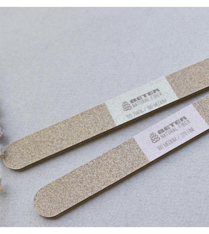 2 Nagelfeilen aus Holz und Korund-Schleifmittel.