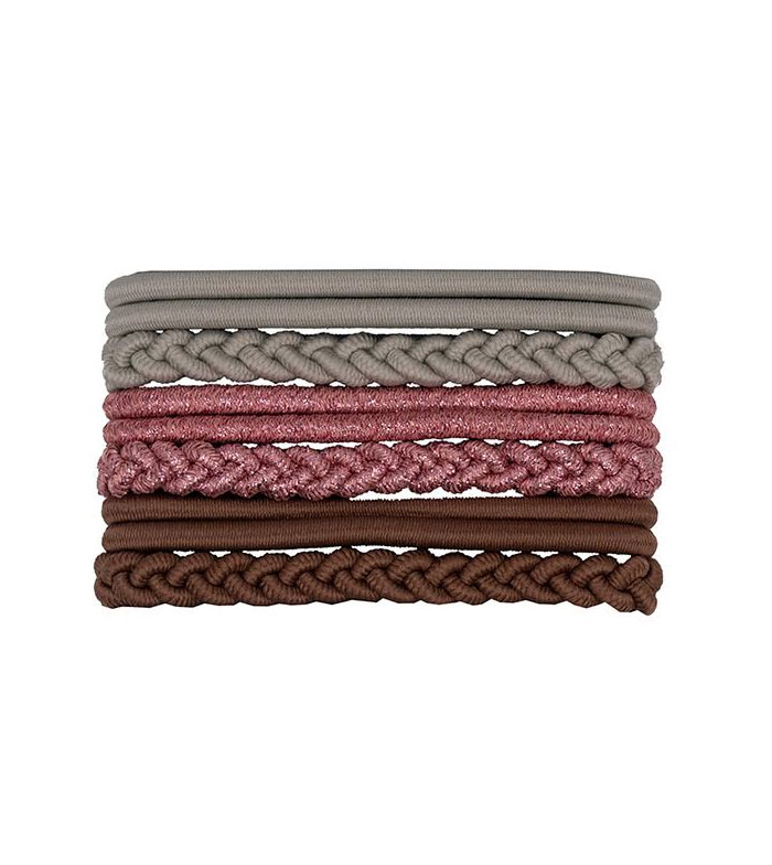 Dieses Set aus der Beter Love at First Signt-Reihe enthält neun elastische Haargummis in verschiedenen Farben, davon drei geflochten.