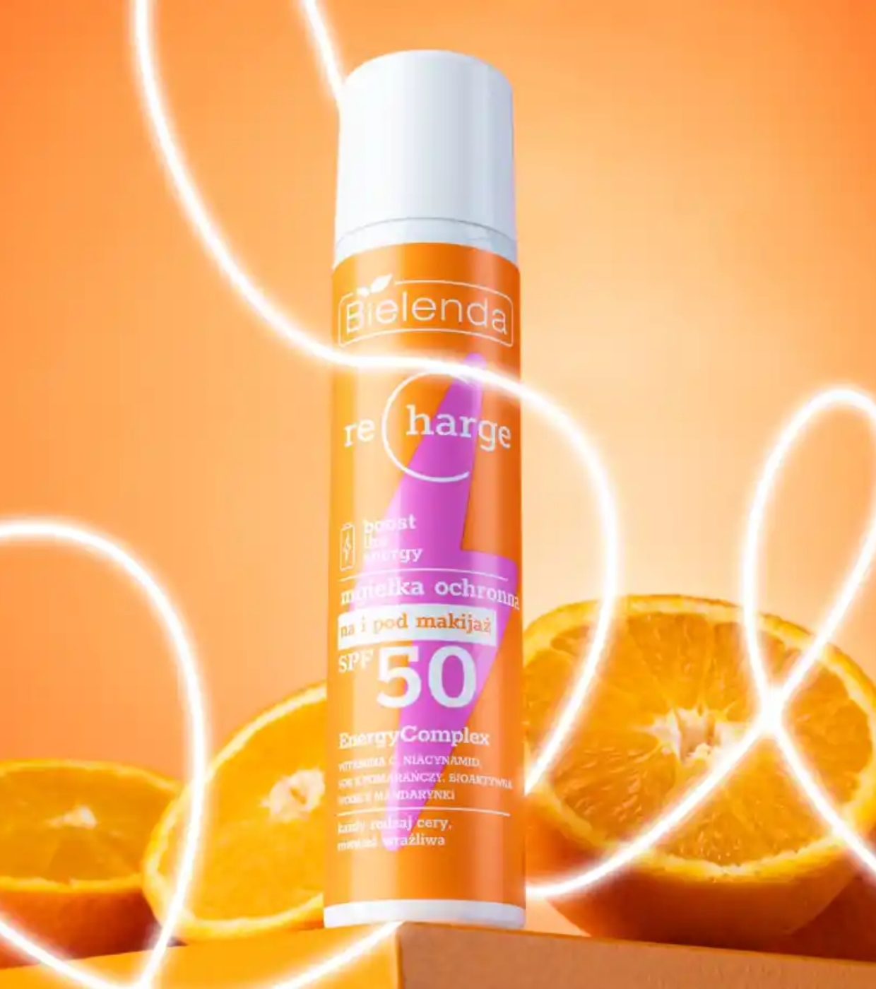 Schützen Sie Ihre Haut zu jeder Tageszeit und sorgen Sie für einen strahlenden Teint mit dem schützenden Gesichtsnebel LSF 50 aus der Linie Recharge von Bielenda .