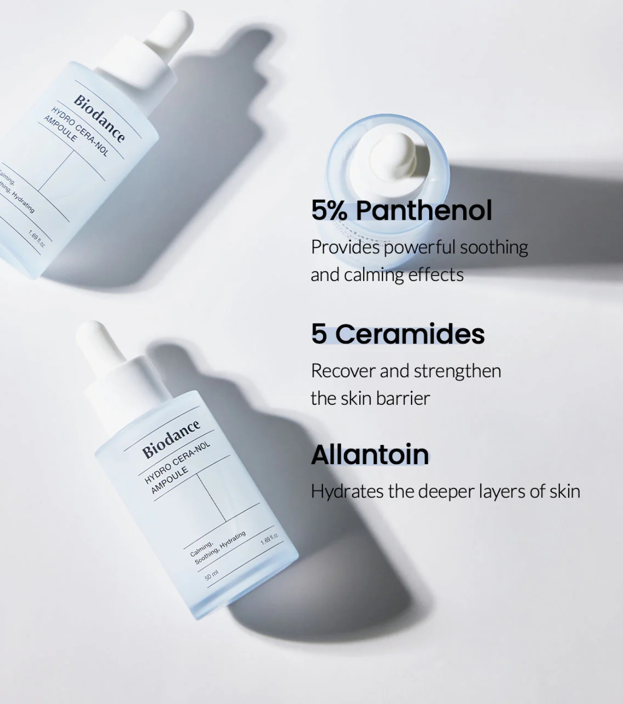 Die Biodance Hydro Cera-nol Ampulle ist Ihre unverzichtbare Behandlung, um Ihrer Haut Tag für Tag Komfort, Feuchtigkeit und Widerstandsfähigkeit zurückzugeben.