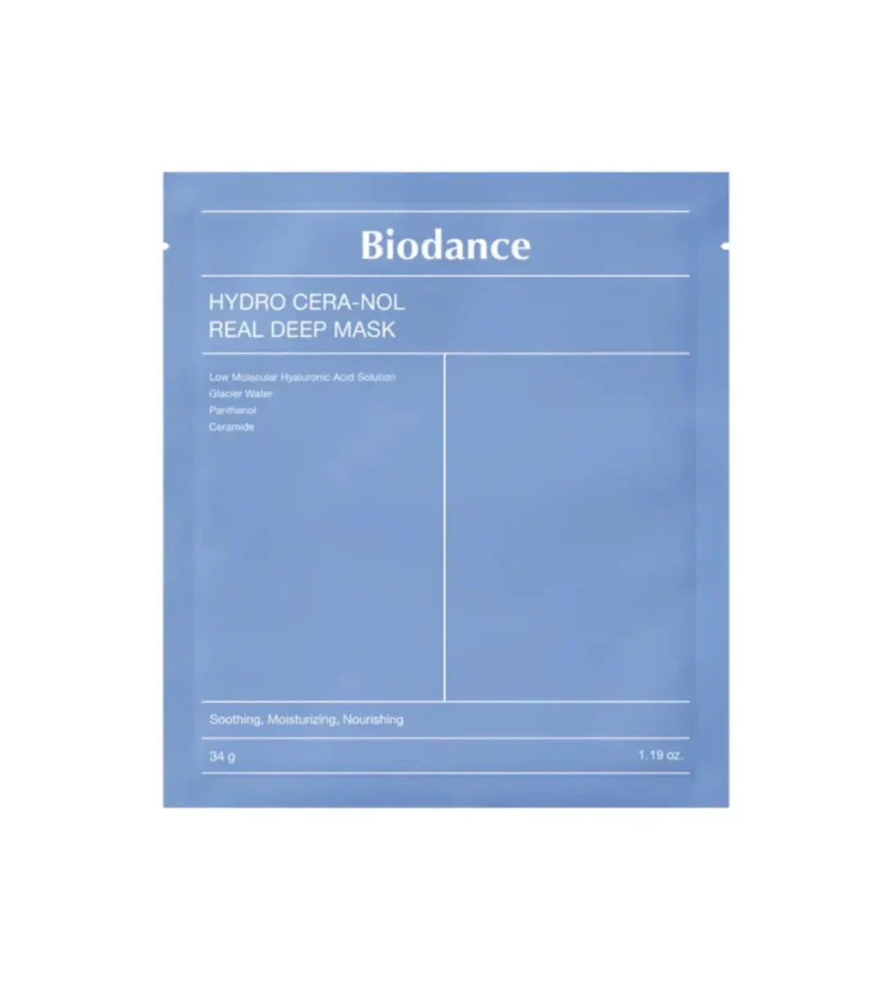 Die Biodance Hydro Cera-Nol Real Deep Facial Mask trägt dazu bei, die Hautfeuchtigkeit wieder aufzufüllen und die Barrierefunktion zu regenerieren.