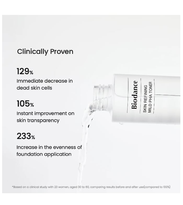 Definieren Sie Ihre Peeling-Routine neu mit diesem Mild PHA Peeling-Toner von Biodance, der die perfekte Balance zwischen Wirksamkeit und Pflege bietet.
