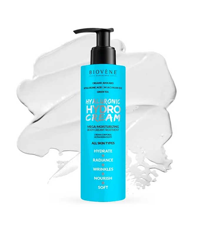 Biovène Körperfeuchtigkeitscreme mit Hyaluronsäure und Bio-Avocado , die die Haut intensiv nährt, um ihre Schutzbarriere wiederherzustellen und ihr sofort seidige Weichheit zurückzugeben.