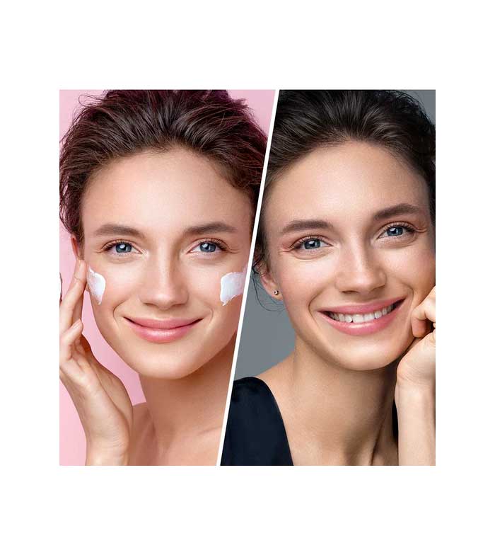 3: Großzügig auf Gesicht und Hals auftragen. Sanft einmassieren und der Haut erlauben, die Creme vollständig aufzunehmen.