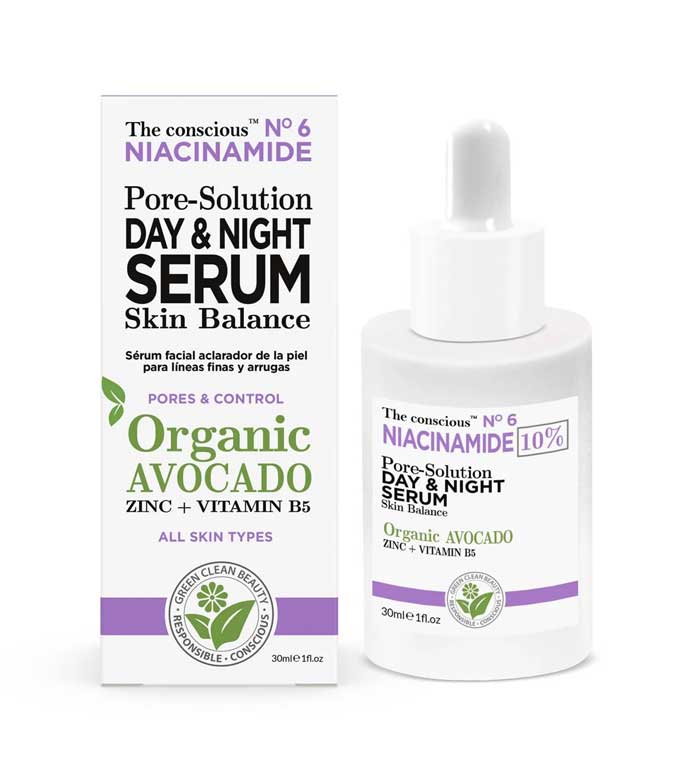 Dieses Gesichtsserum hilft, die Haut mit Niacinamid, Zink und Bio-Avocadoöl auszugleichen, um das Erscheinungsbild von Hautunreinheiten und Poren Tag und Nacht zu verringern.