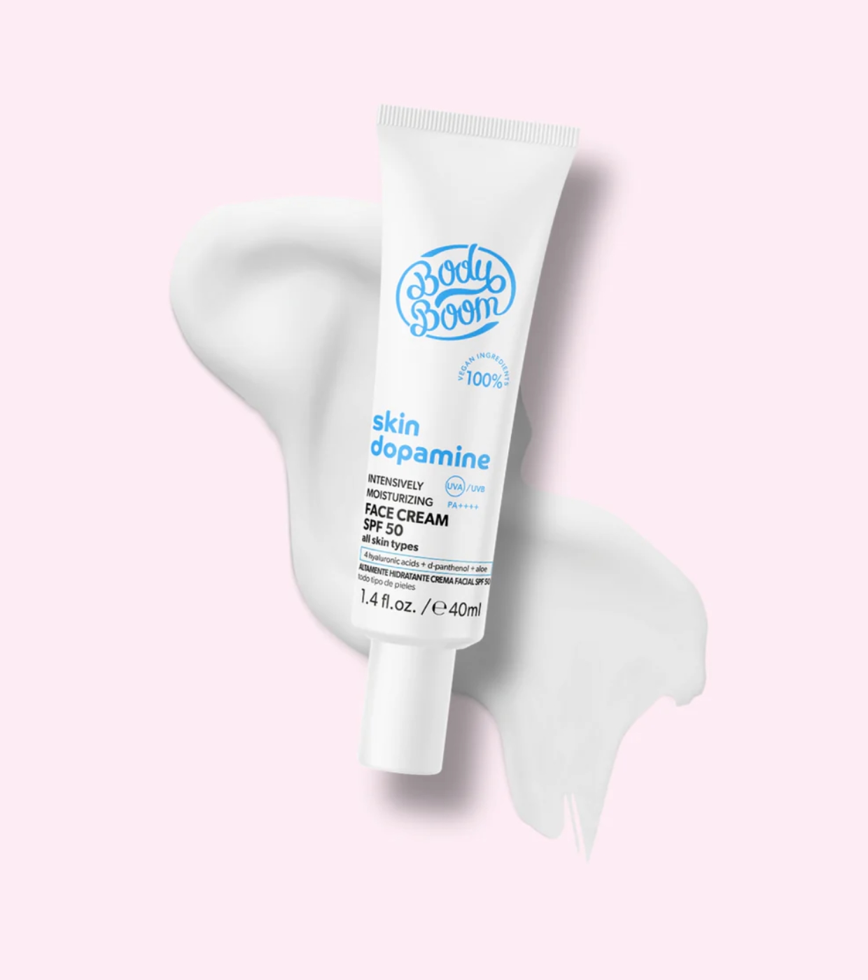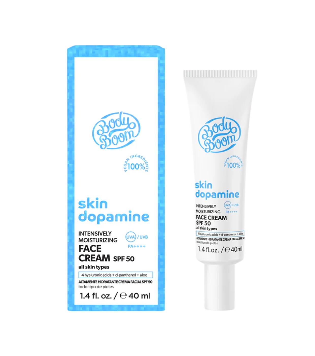 Vereinfachen Sie Ihre tägliche Routine mit der SPF50 PA ++++ Hyaluronic acid + Pantenol + Aloe Gesichtscreme Bodyboom , der Multitasking-Creme, die Ihre Haut in einem Schritt intensiv mit Feuchtigkeit versorgt und vor Sonnenschäden schützt.