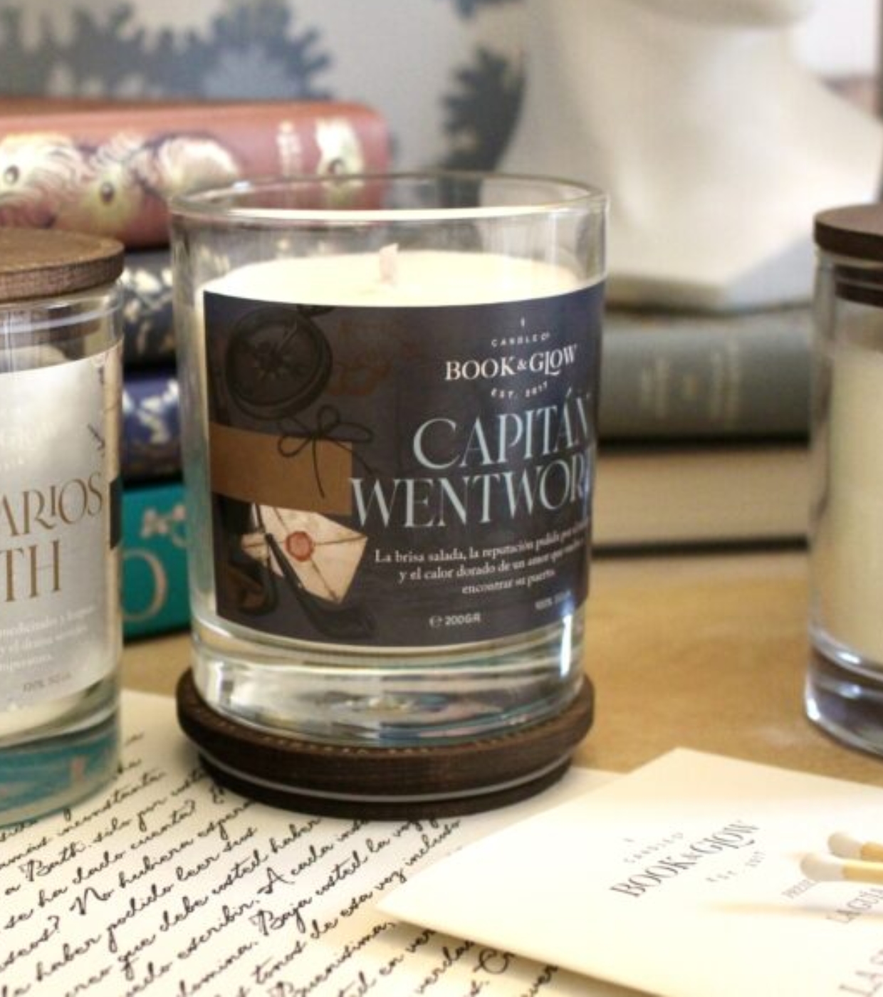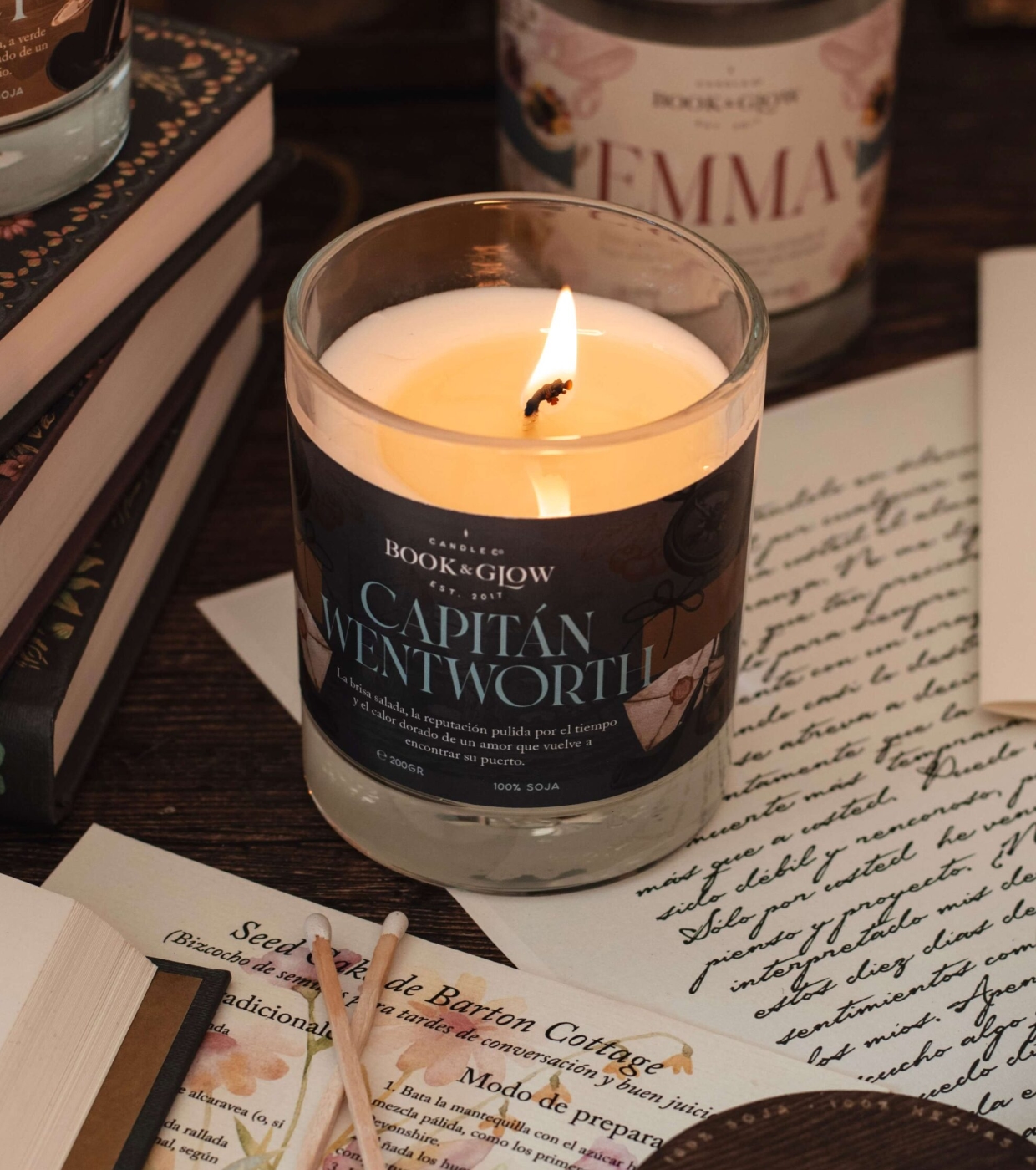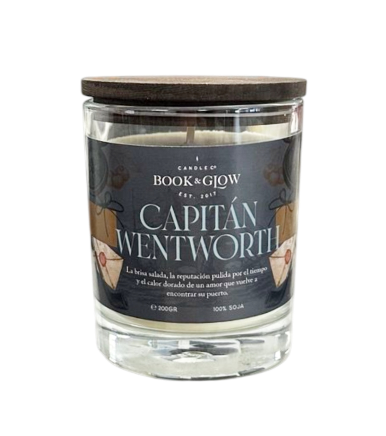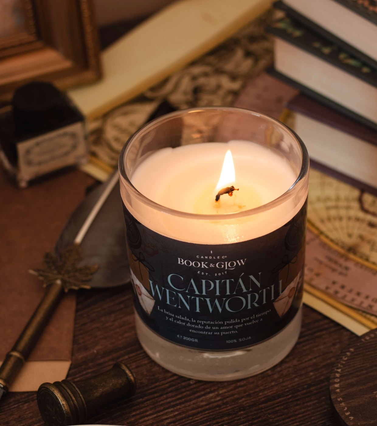 Entdecken Sie die Sojakerze Capitán Wentworth von Book and Glow .