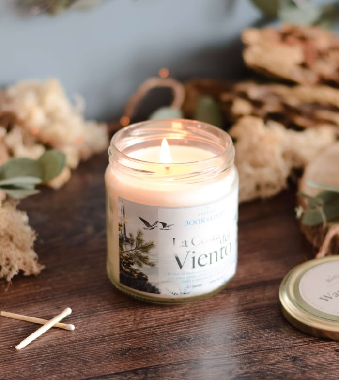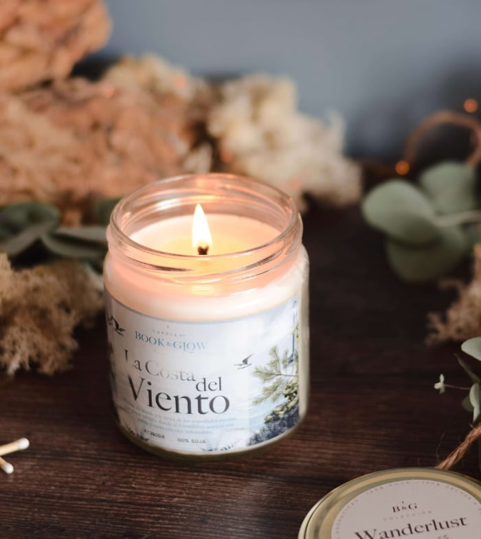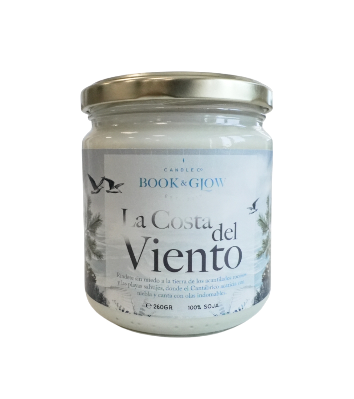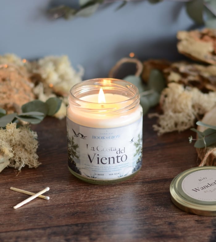 Salziger Fels, feuchte Erde und nebliger Wald: So riecht die Costa del Viento, ein Duft, inspiriert von der unbezwingbaren Kraft des Kantabrischen Meeres, die Sojakerze La Costa del Viento von Book and Glow .