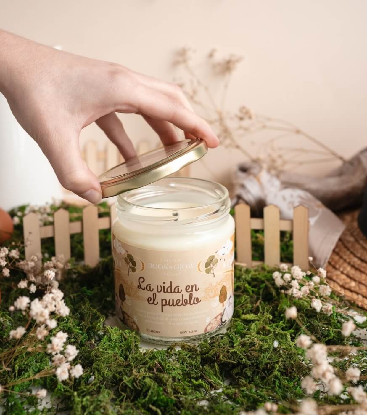 Lassen Sie sich mit der Sojakerze Book and Glow Village Life von der Essenz eines langsamen und authentischen Sommers umhüllen.