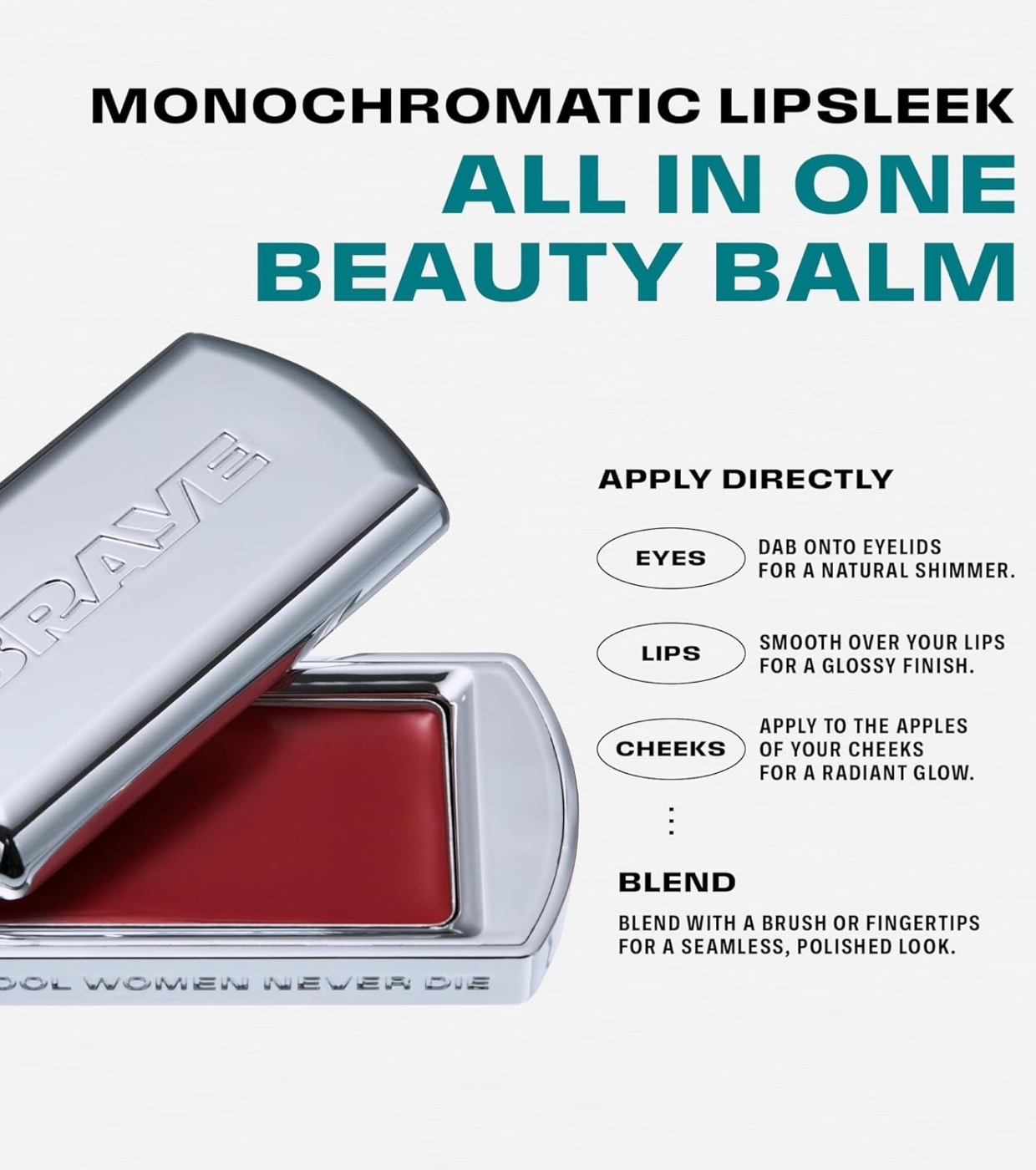 Lipsleek von BRAYE ist ein multifunktionaler Lippen- und Wangenbalsam, der intensiv Feuchtigkeit spendet und eine sanfte, aufbaubare Farbe mit einem samtigen, halbmatten Finish bietet.