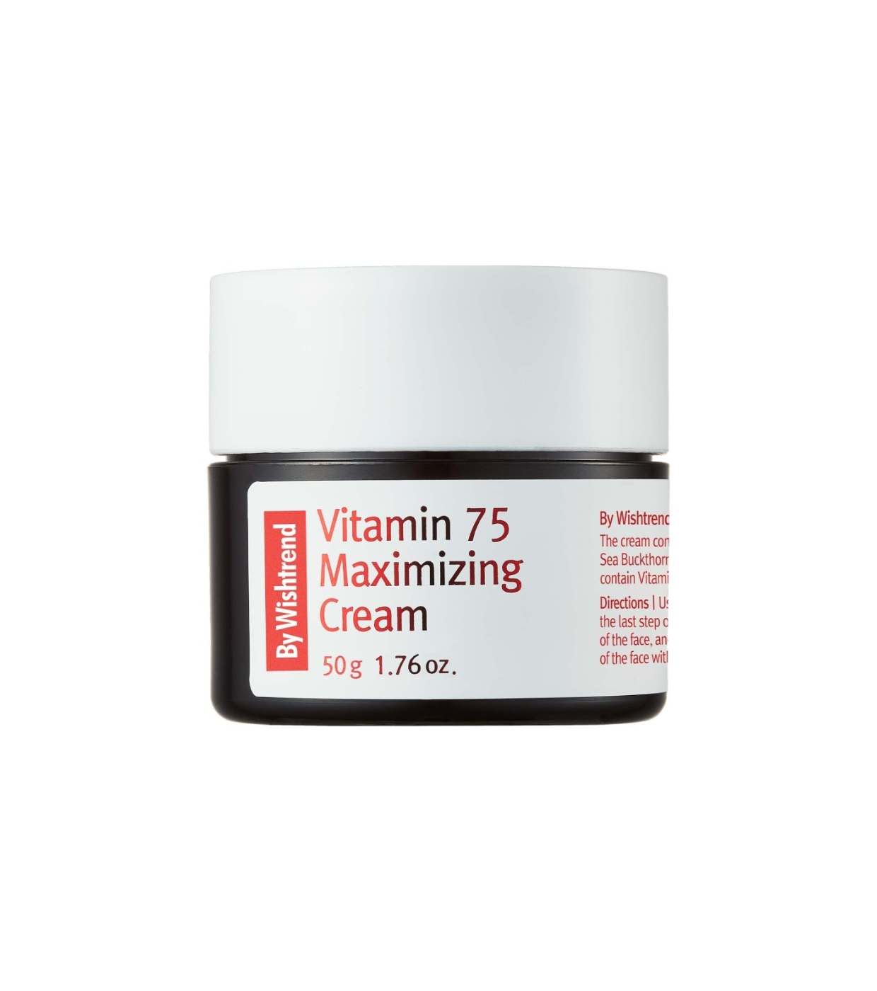 Entdecken Sie diese feuchtigkeitsspendende Gesichtscreme Vitamin 75 Maximizing von By Wishtrend , die ideale Ergänzung, um die Wirkung von Seren mit Vitamin C zu verstärken und einen gleichmäßigen Teint und strahlende Haut zu fördern.