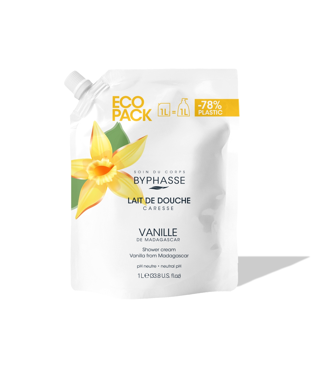 Byphasse Duschgel mit Vanilleextrakt , das Ihre Haut parfümiert und für extra Geschmeidigkeit sorgt.