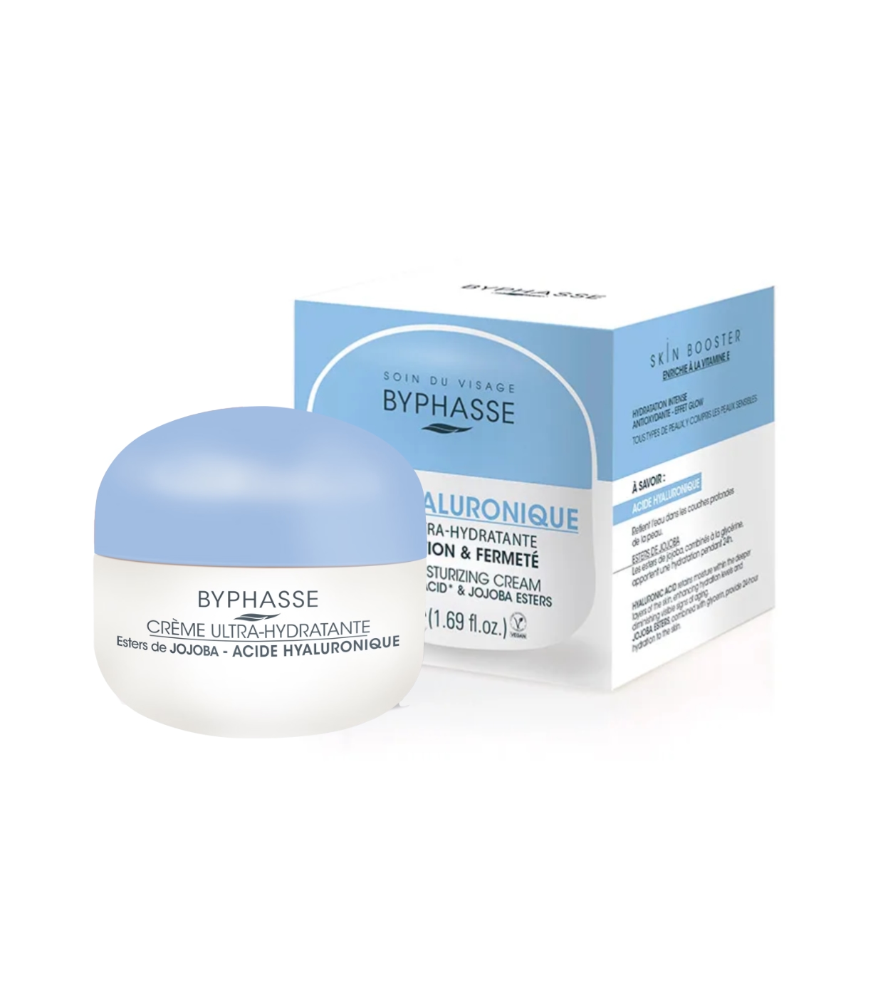 Byphasse Hyaluronsäure-Feuchtigkeitscreme besteht aus abgeleiteter Hyaluronsäure und einer Kombination aus Jojoba- und Glycerinestern und sorgt für eine intensive und lang anhaltende Feuchtigkeitsversorgung für 24 Stunden.