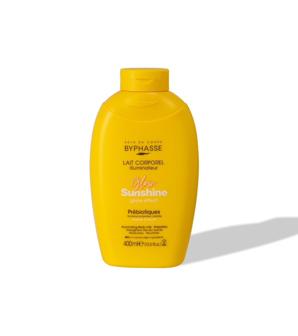 Erzielen Sie einen „Glass Skin“-Effekt mit der Glow Sunshine Illuminating Body Milk von Byphasse , einer nährenden Formel, die Präbiotika, Sheabutter und Traubenkernöl kombiniert, um die Hautbarriere zu stärken und gleichzeitig die Haut mit Feuchtigkeit zu versorgen, zu nähren und zum Strahlen zu bringen.