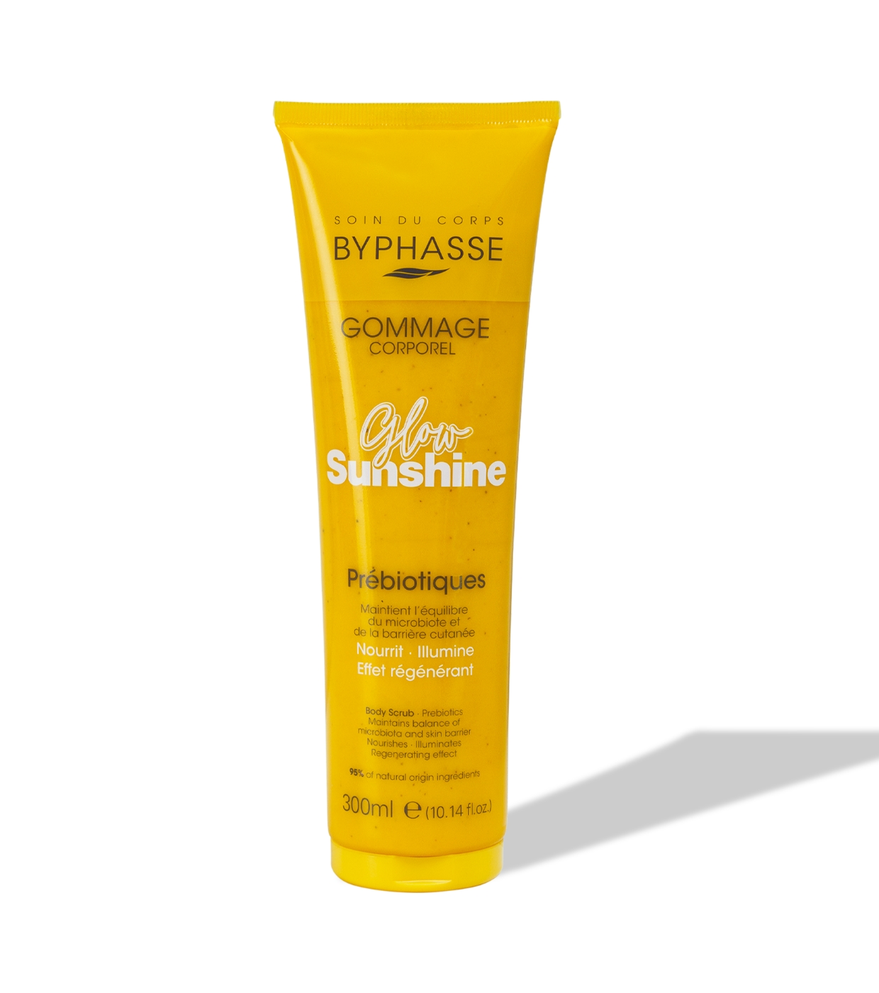 Das Körperpeeling Glow Sunshine von Byphasse hinterlässt dank seiner natürlichen Aprikosenkern- und Bimssteinpartikel, die abgestorbene Hautschüppchen sanft und ohne Irritationen entfernen, ein weiches und strahlendes Hautgefühl.