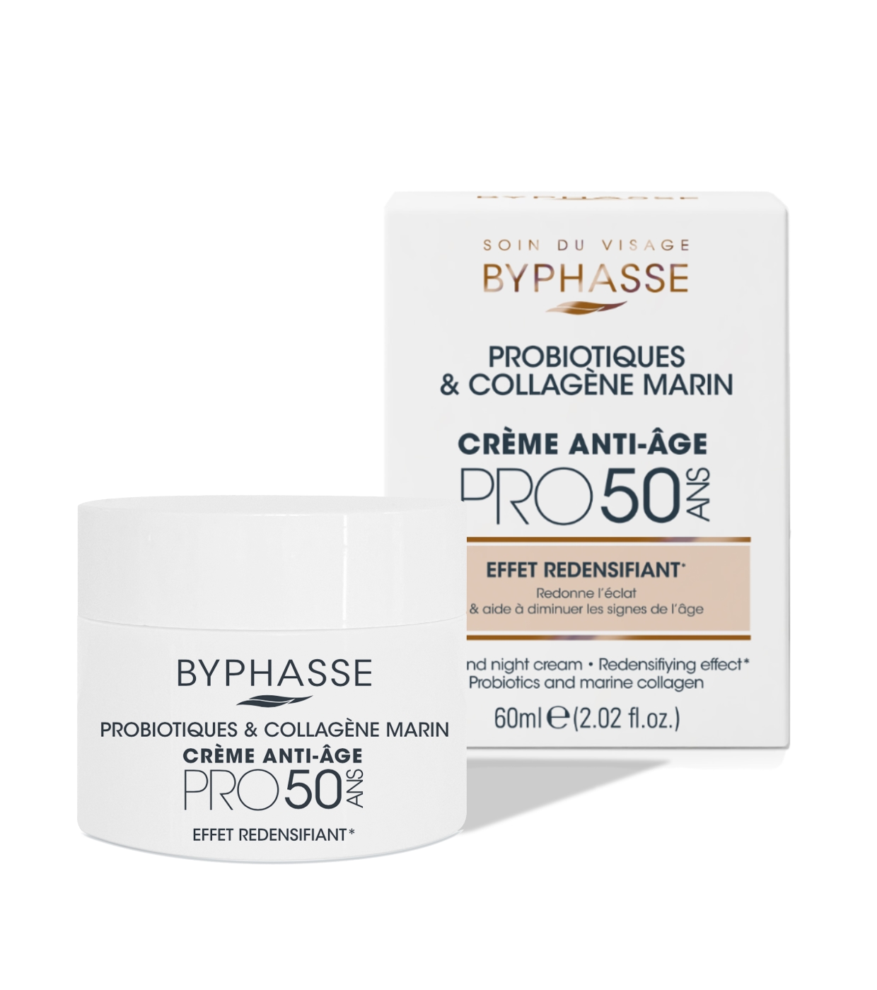 Die Anti-Aging-Creme PRO50 Redensifying von Byphasse enthält einen leistungsstarken Anti-Aging-Wirkstoff, der dabei hilft, die Hautdichte und die Leuchtkraft der Haut wiederherzustellen, die Mikrozirkulation anzuregen und so eine Anti-Falten-Wirkung zu erzielen.