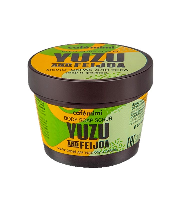 Erzielen Sie glatte, samtige Haut mit der Körperpeeling-Seife „Yuzu und feijoa“ von Café mimi!