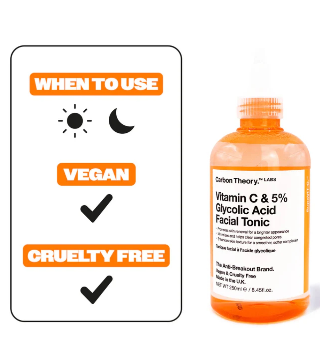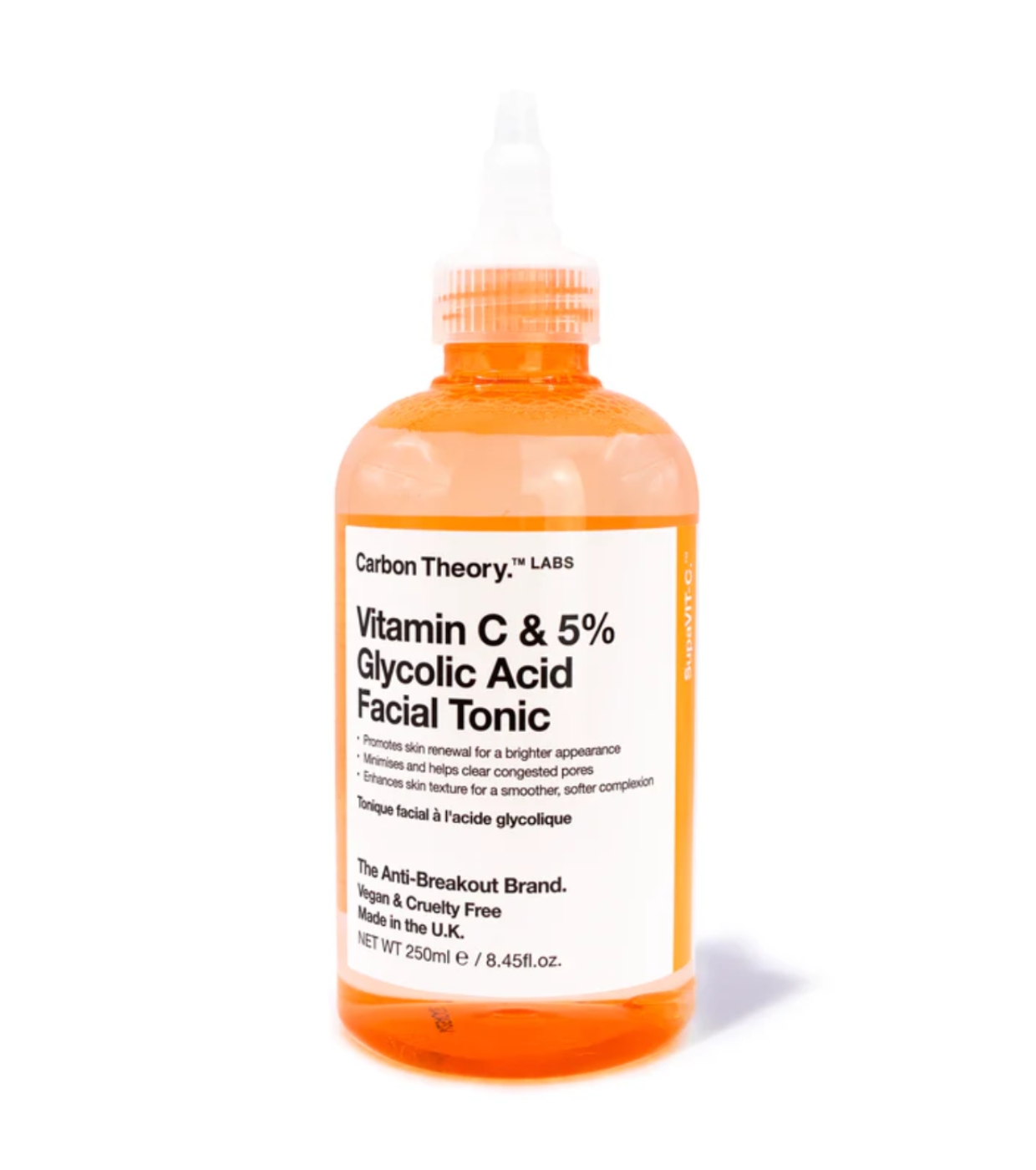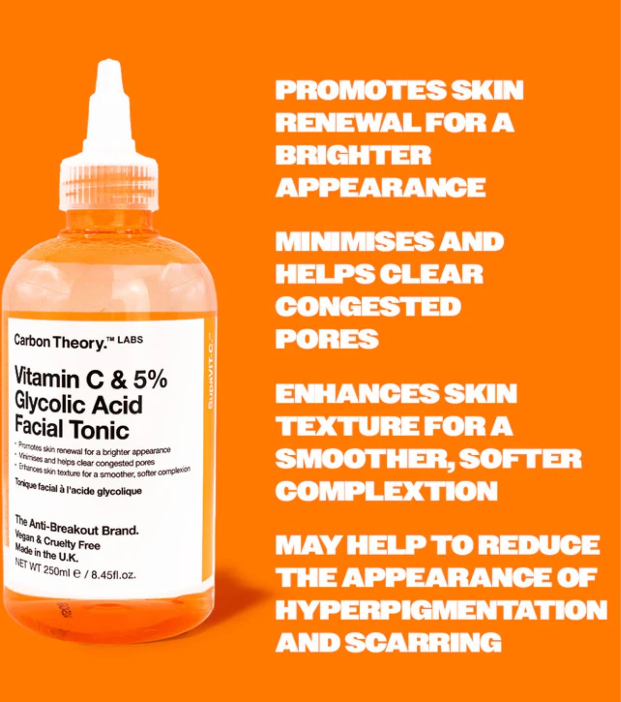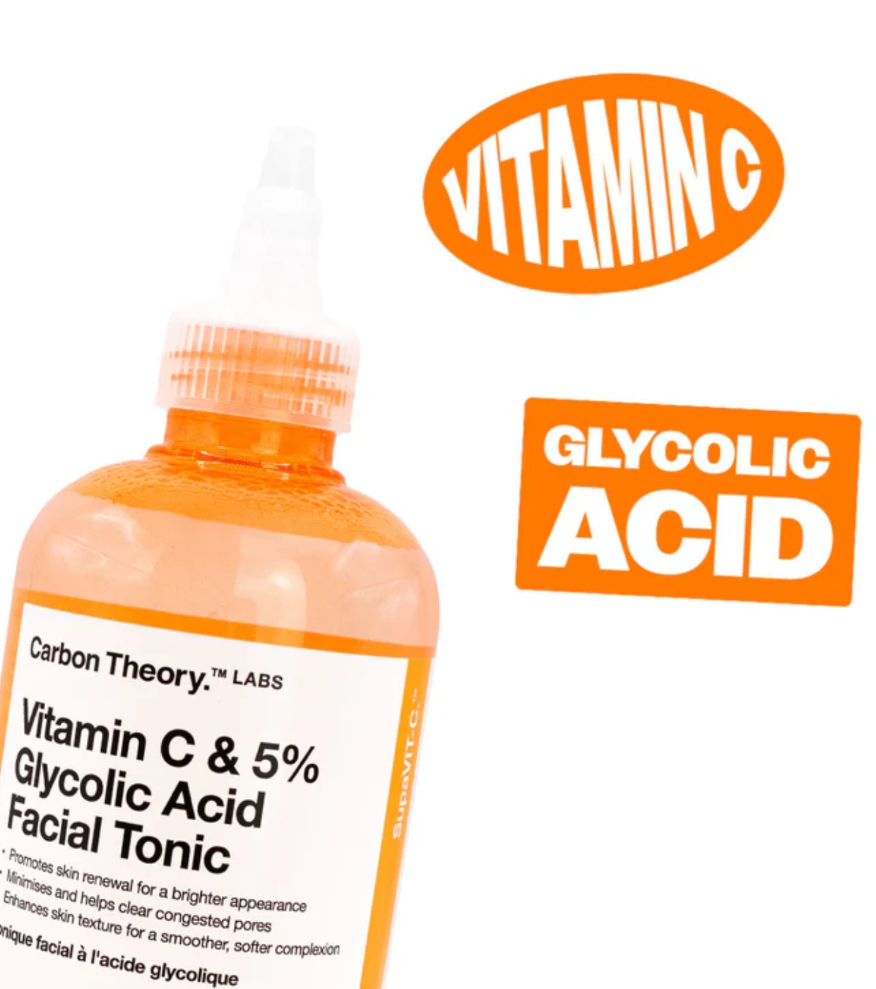 Carbon Theory Das Gesichtswasser mit Vitamin C und 5 % Glykolsäure ist der perfekte Verbündete für die Zellerneuerung, Verbesserung der Textur und Reduzierung von Narben nach Ausbrüchen.