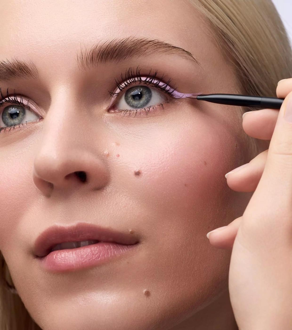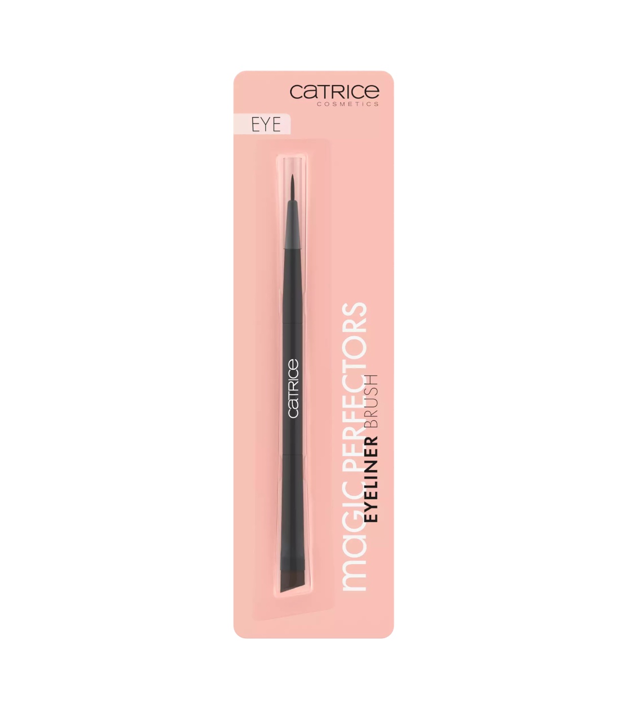 Verwenden Sie das abgewinkelte Ende des Catrice Magic Perfectors Eyeliner-Pinsels für präzise Lidstriche, beginnend am äußeren Augenwinkel und nach innen vorarbeitend, und wechseln Sie zum spitzen Ende für detailliertes Make-up oder feine Lidstriche entlang des Wimpernkranzes.