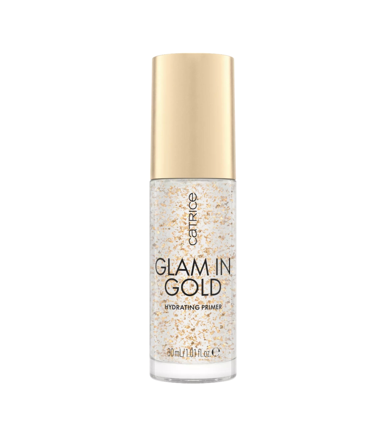 Glam In Gold Hydrating Primer Oh My Goldness von Catrice ist ein Primer, der dank seiner authentischen 24-Karat-Goldflocken intensive Feuchtigkeitsversorgung mit einem strahlenden Finish kombiniert.
