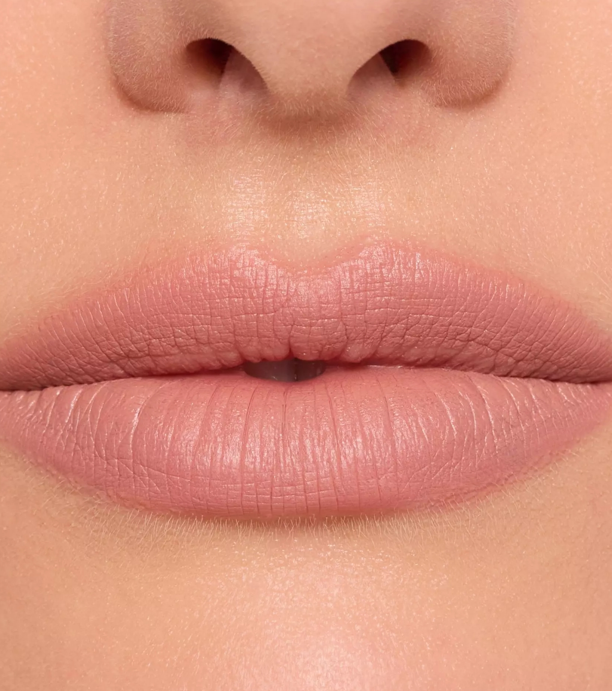 Seine leichte, langanhaltende Formel gleitet sanft über die Lippen und sorgt für ein samtig-mattes Finish, das nicht abfärbt oder austrocknet.