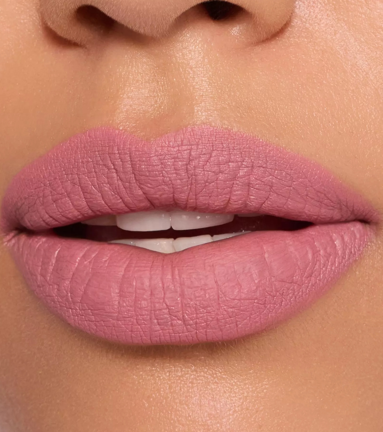 Seine leichte, langanhaltende Formel gleitet sanft über die Lippen und sorgt für ein samtig-mattes Finish, das nicht abfärbt oder austrocknet.