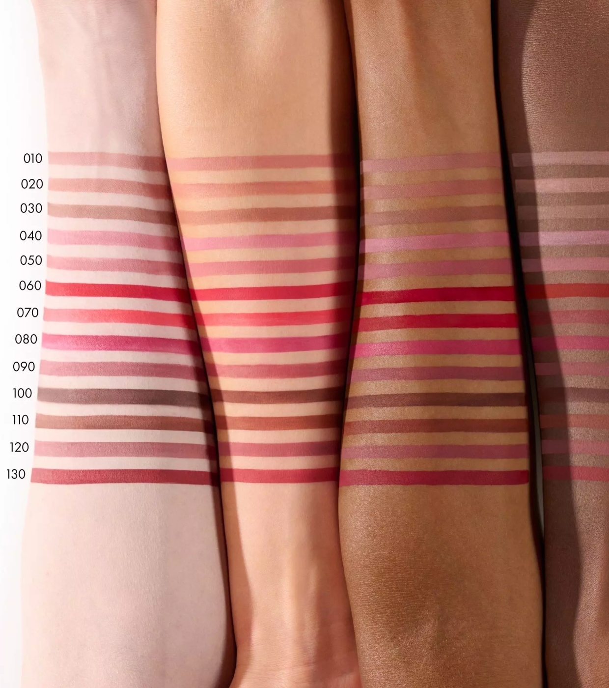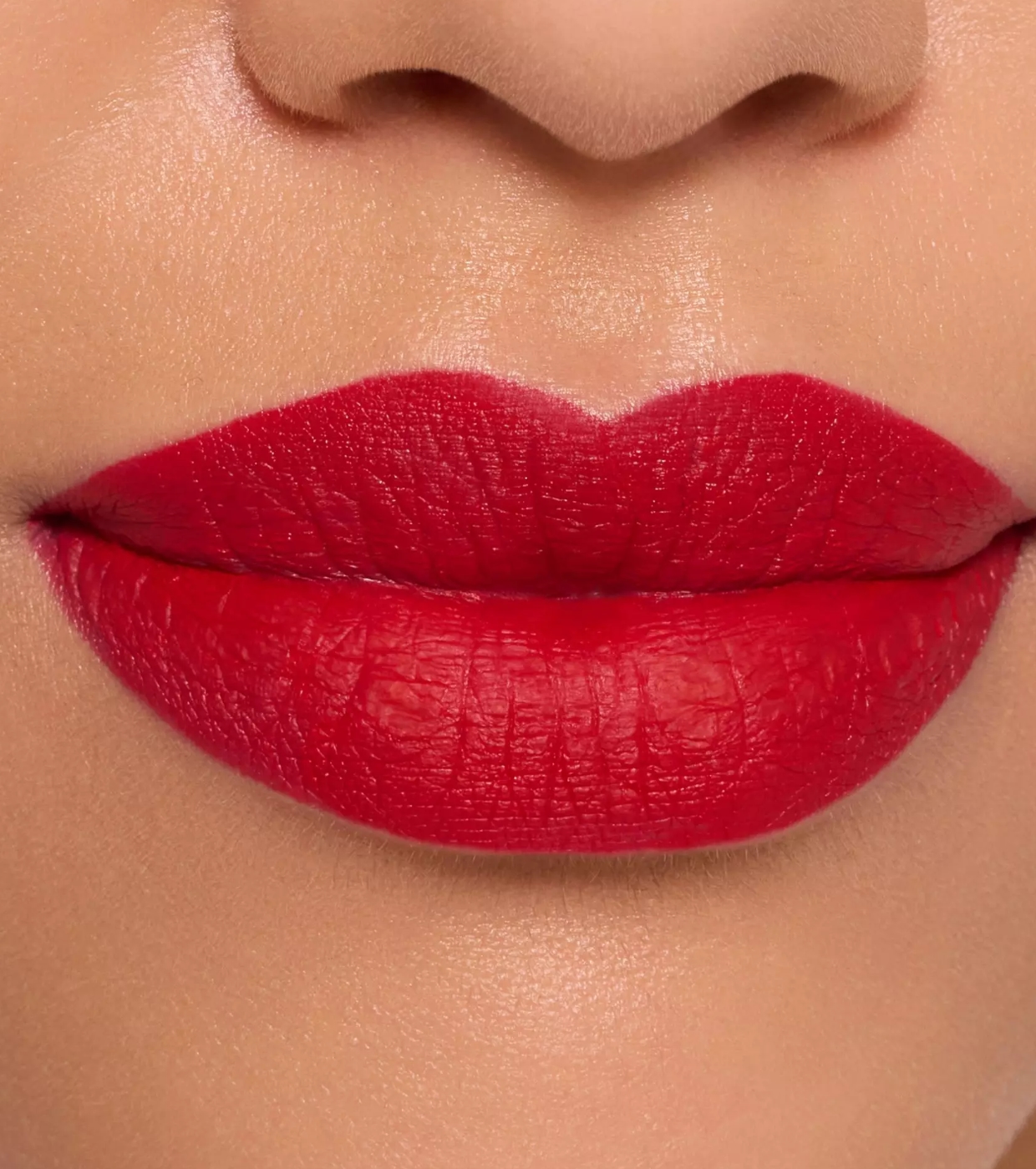 Seine leichte, langanhaltende Formel gleitet sanft über die Lippen und sorgt für ein samtig-mattes Finish, das nicht abfärbt oder austrocknet.