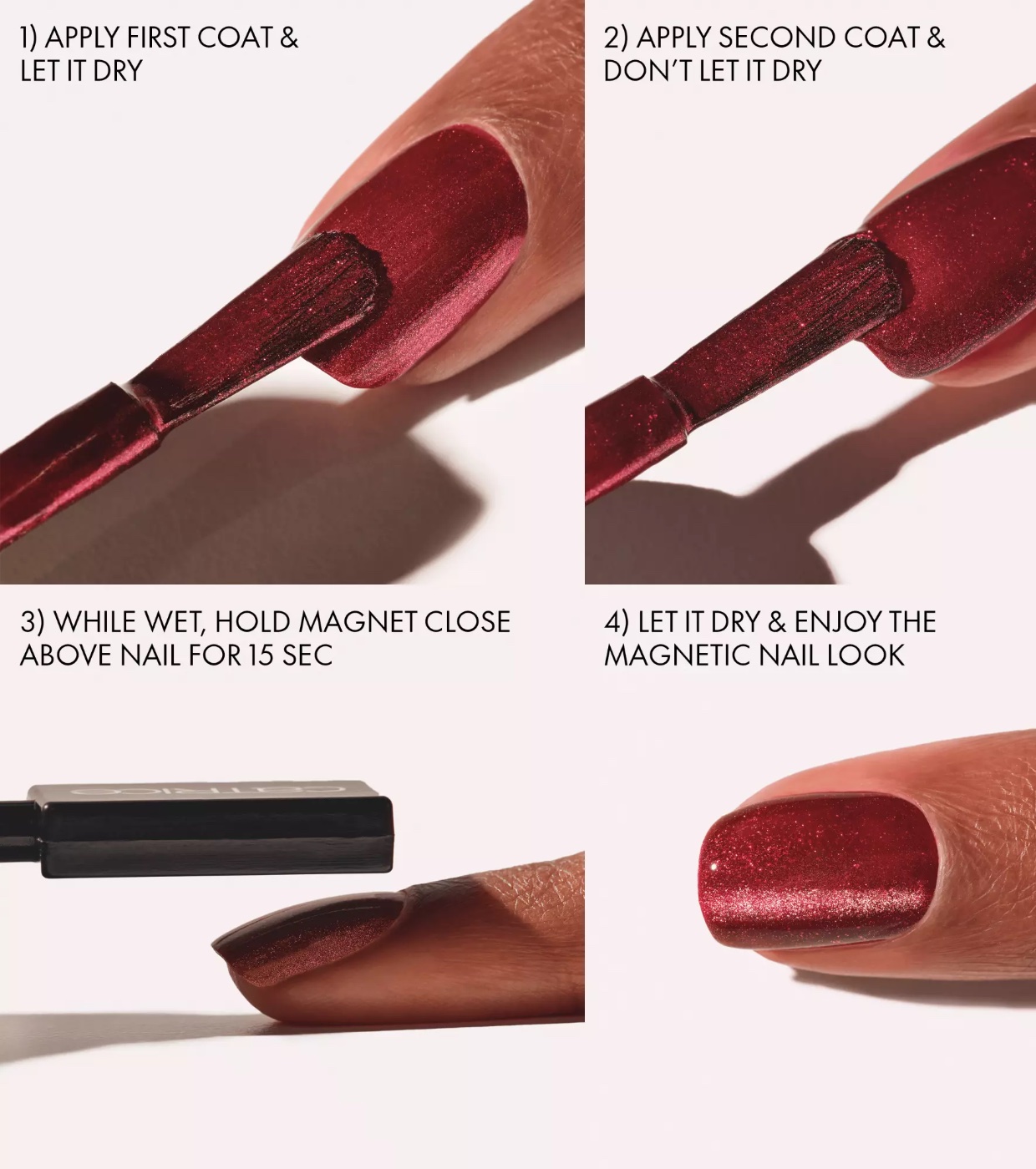 Mit diesem spektakulären Metallic-Bronze-Lack mit schimmernden Magnetpigmenten können Sie zu Hause 3D-Effekte wie Katzenaugen-, Samt- oder Glasnägel kreieren und so eine professionell aussehende Maniküre erzielen.