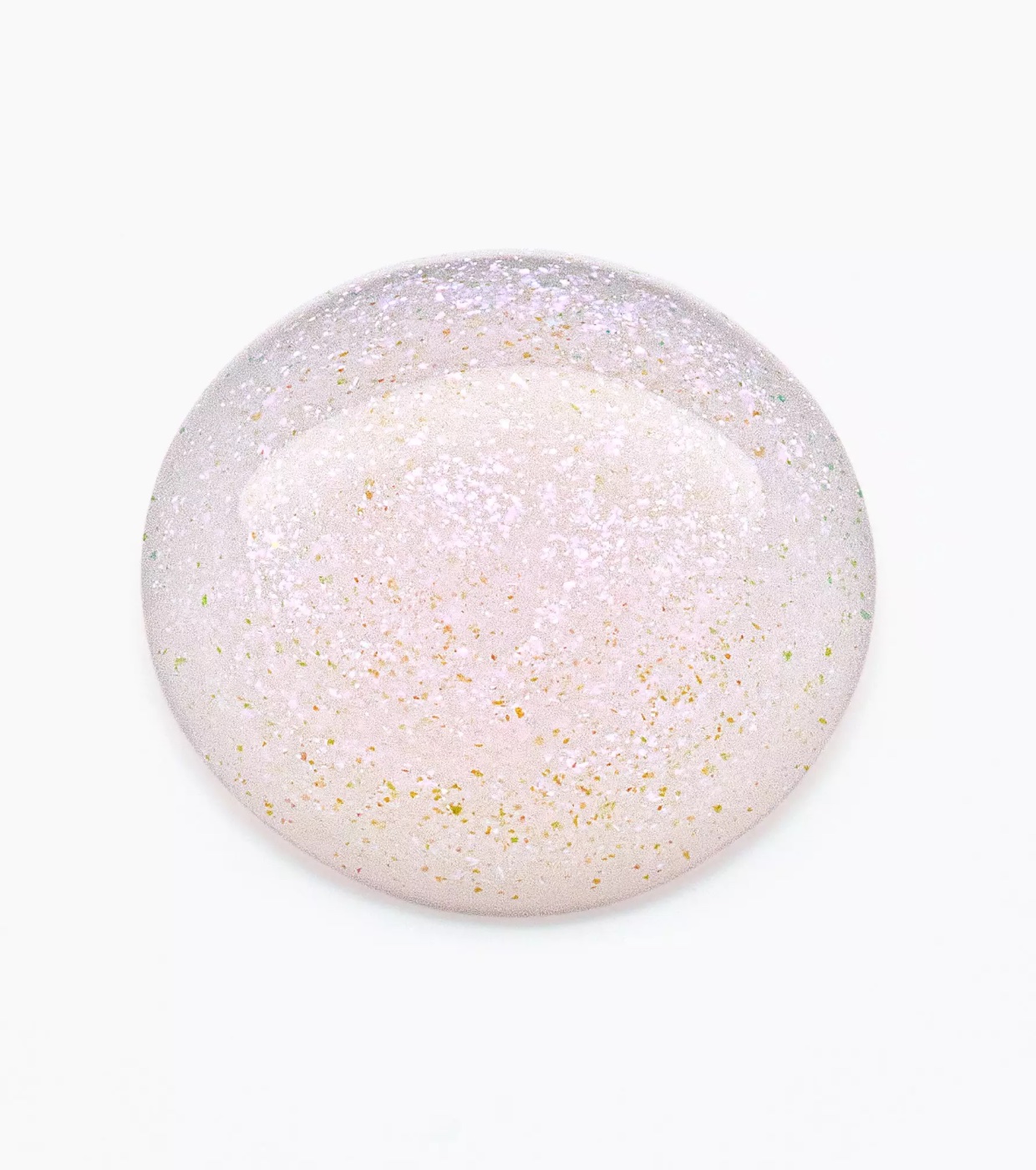 Seine leichte, nicht klebrige Textur zieht sofort ein, ohne einen fettigen Rückstand zu hinterlassen, und sein milchig-rosa Finish mit lila und rosa Glitzerpartikeln verleiht ihm eine charmante optische Note.