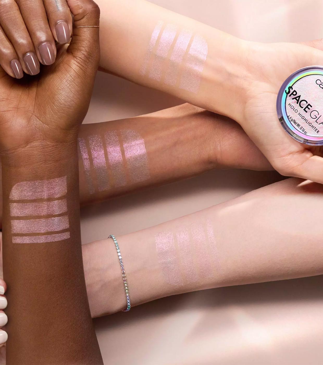 Fliegen Sie in den Weltraum mit dem Space Glam Holo-Highlighter von Catrice und erzeugen Sie einen unwirklichen Glanz.