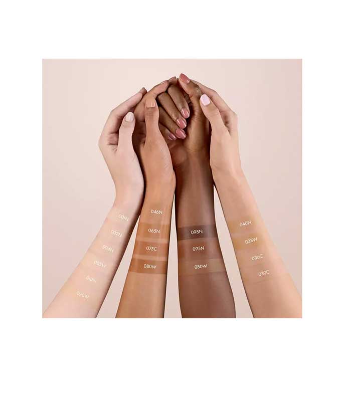 Seine speziell beschichteten Pigmente garantieren lang anhaltenden Halt und aufbaubare Deckkraft von leicht bis mittel für einen strahlenden Teint mit einem natürlich matten Finish.