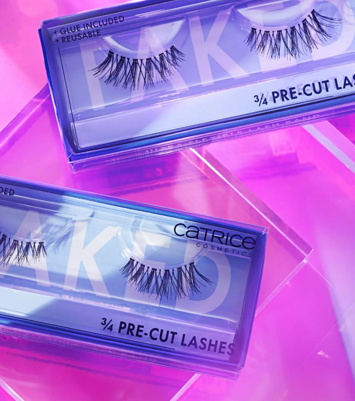 Erhalten Sie einen spektakulären Look und einen auffälligen, aber natürlichen Effekt mit den 3/4 vorgeschnittenen gefälschten Wimpern von Catrice.