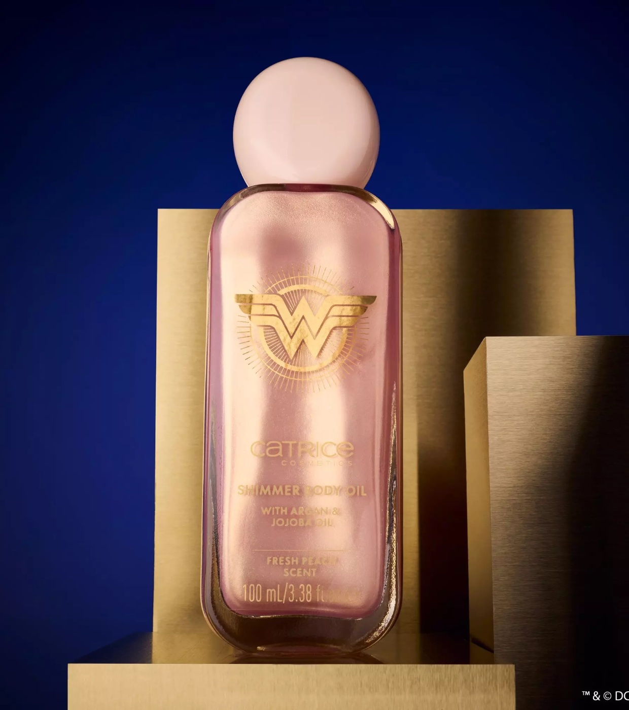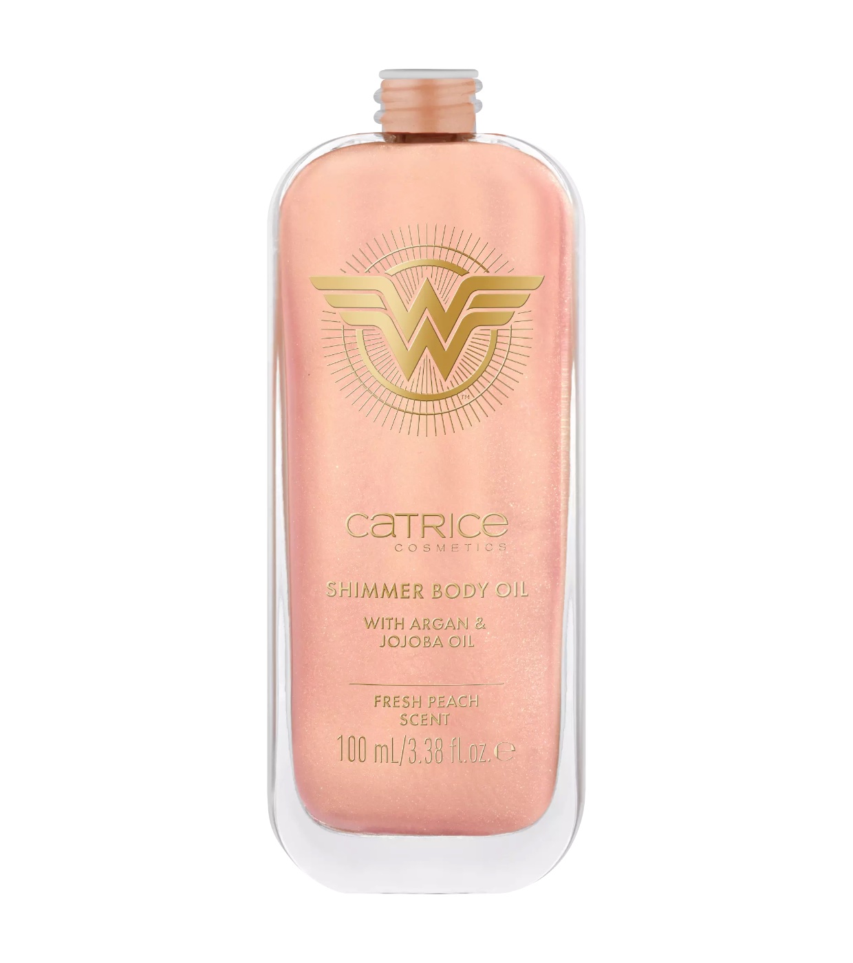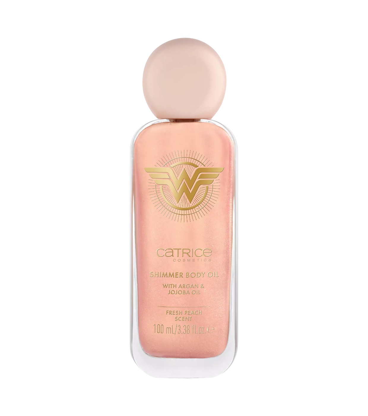 Entdecken Sie den Luxus des Catrice Wonder Woman 020 Sassy Body Oil , eines Körperöls mit roségoldener Textur und schimmernden Roségoldpartikeln, das Ihre Haut verwandelt und ihr einen warmen und eleganten Glanz verleiht.