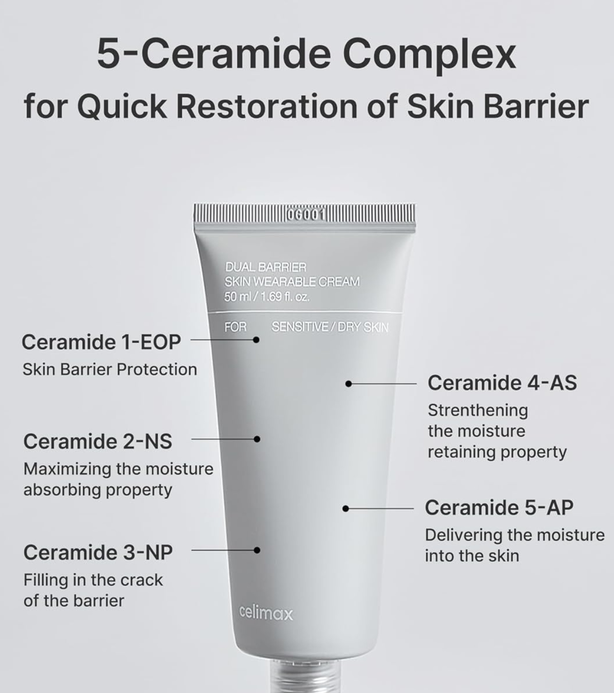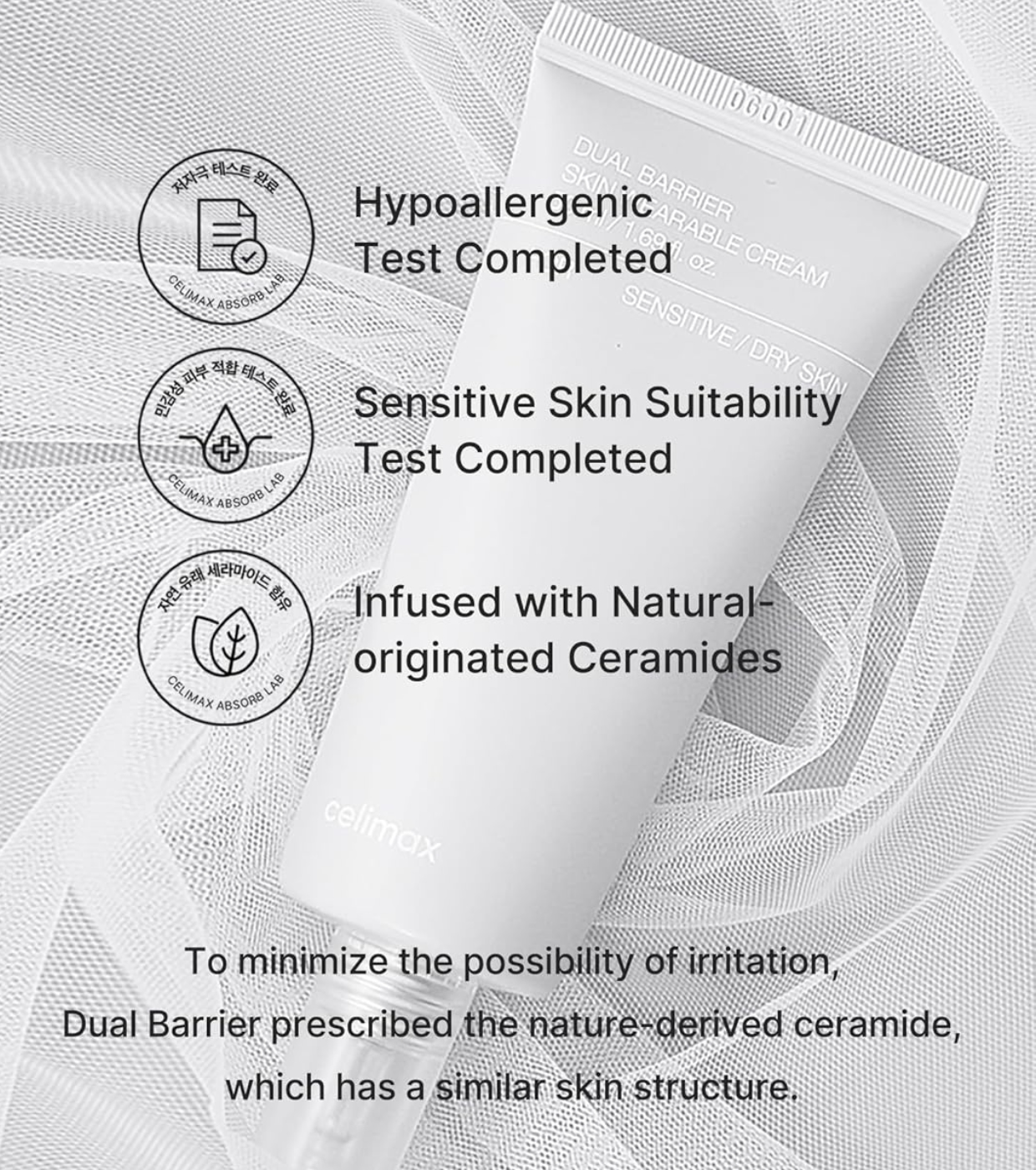 Die Dual Barrier Skin Wearable Cream von Celimax ist eine leichte und dennoch äußerst nährende Gesichtscreme, die die Hautbarriere stärkt, tiefenwirksam mit Feuchtigkeit versorgt und die Haut vor äußeren Einflüssen schützt.