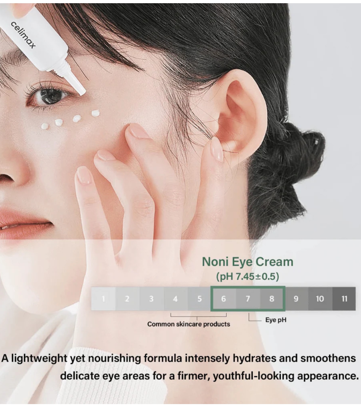 The Real Noni Ultimate Eye Cream von Celimax ist eine klinisch hochwirksame Augenkonturcreme, die entwickelt wurde, um Augenringe zu reduzieren, Fältchen zu glätten und die Festigkeit der Haut um die Augen wiederherzustellen.
