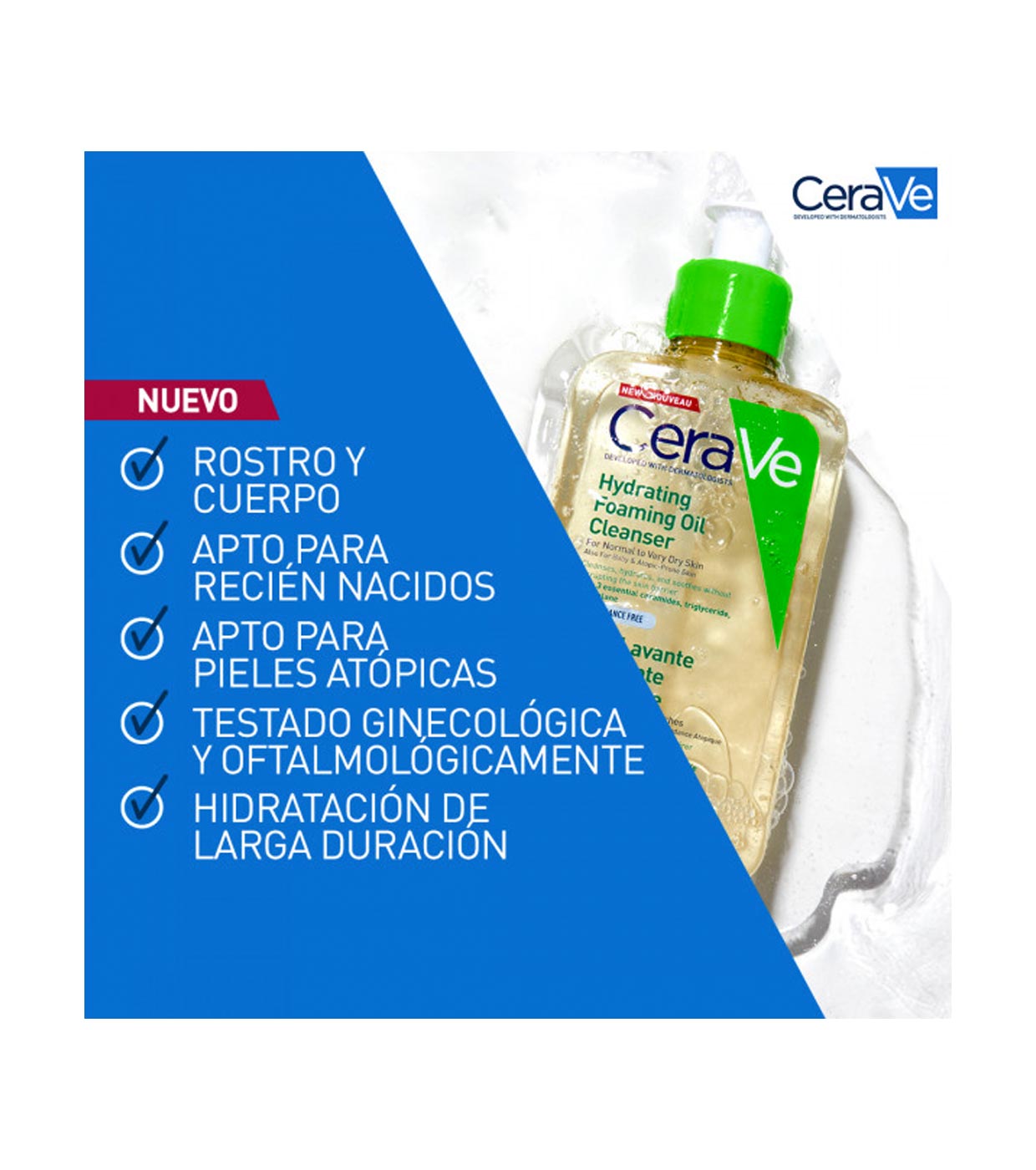 Feuchtigkeitsspendendes, schäumendes Reinigungsöl für normale bis sehr trockene Haut von Cerave.