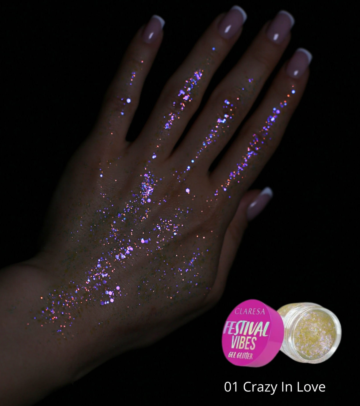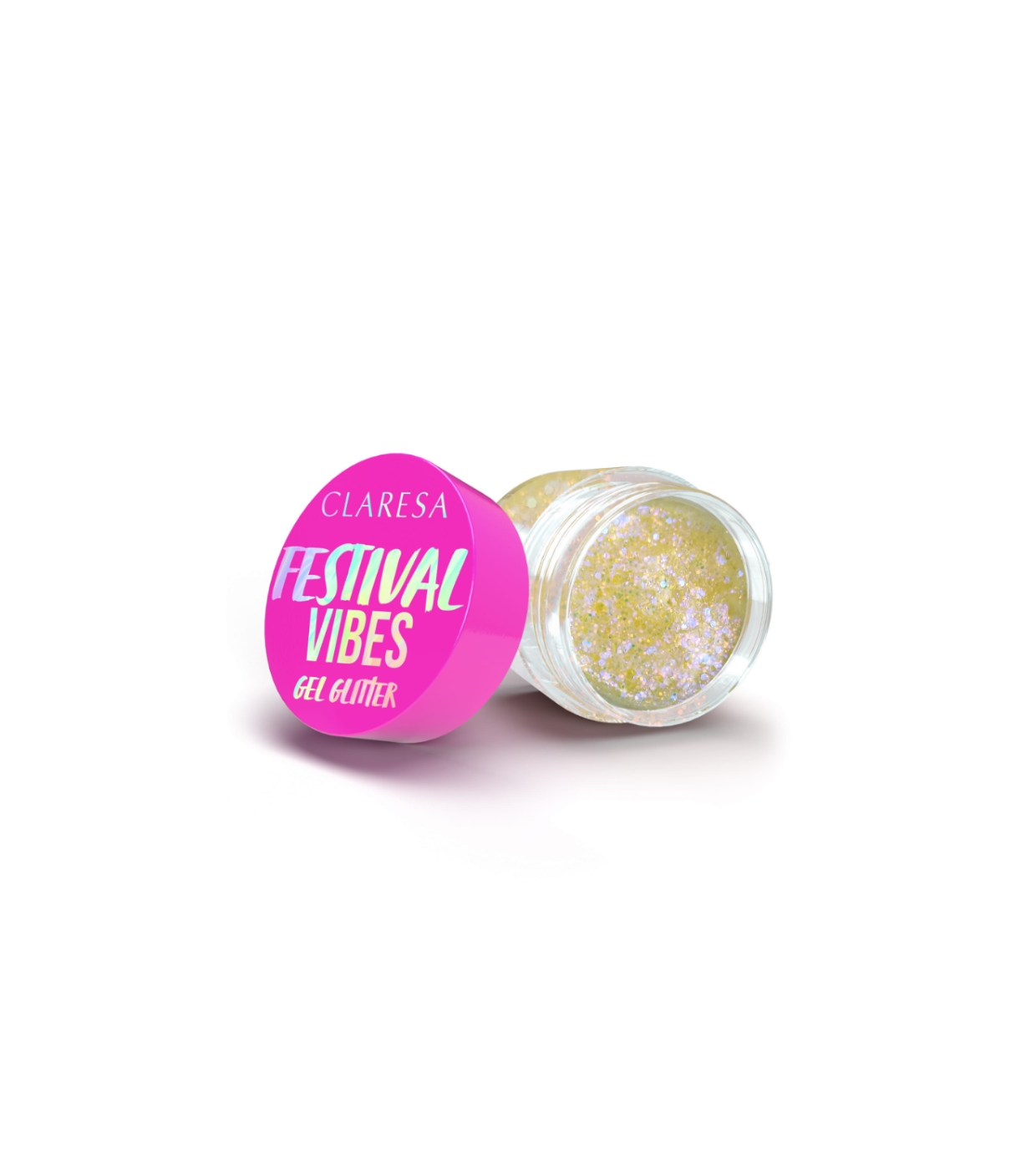 Spüren Sie die Festivalstimmung auf Ihrer Haut mit Festival Vibes Festival Vibes Glitter Gel , dem Glitzergel, das jeden Look in eine Explosion aus Licht und Farbe verwandelt.