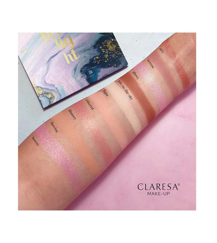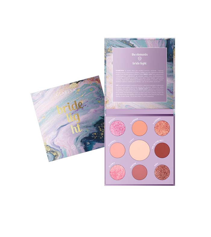 Die Bride Light-Palette von Claresa ist eine Kombination aus leuchtenden Schatten, zart wie eine Brise, die die Subtilität und Weiblichkeit des Make-ups hervorheben, und Farben, die das Augenlid perfekt modellieren.