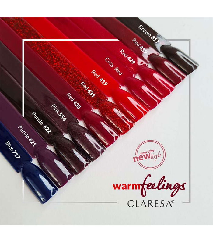 Die semipermanenten Emails von Claresa bieten eine Haltbarkeit von bis zu 3 Wochen in einwandfreiem Zustand und voller Deckkraft in 2 Schichten.