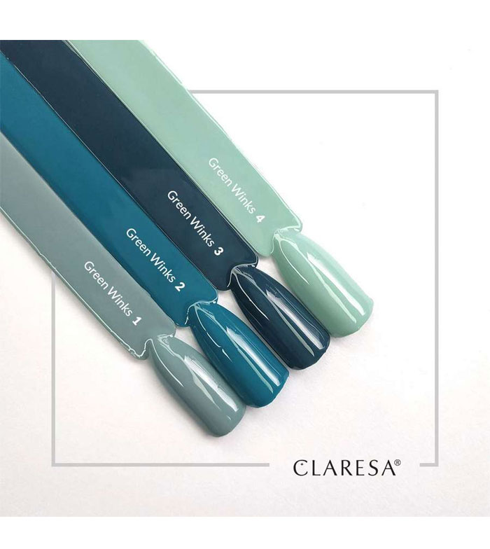 Die semipermanenten Nagellacke Green Winks von Claresa haben einzigartige und ungewöhnliche Farben in Blau-, Grau- und Grüntönen, die Ihr Herz erobern werden.