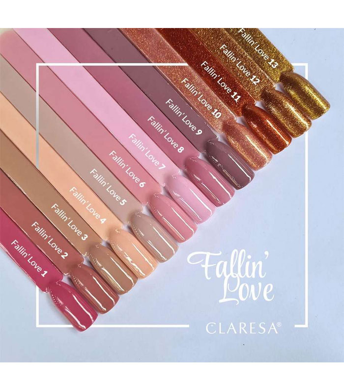 Die semi-permanenten Nagellacke aus der Serie Fallin' Love von Claresa nehmen uns mit auf einen romantischen Spaziergang durch den Park mit Sonnenuntergang im Hintergrund.