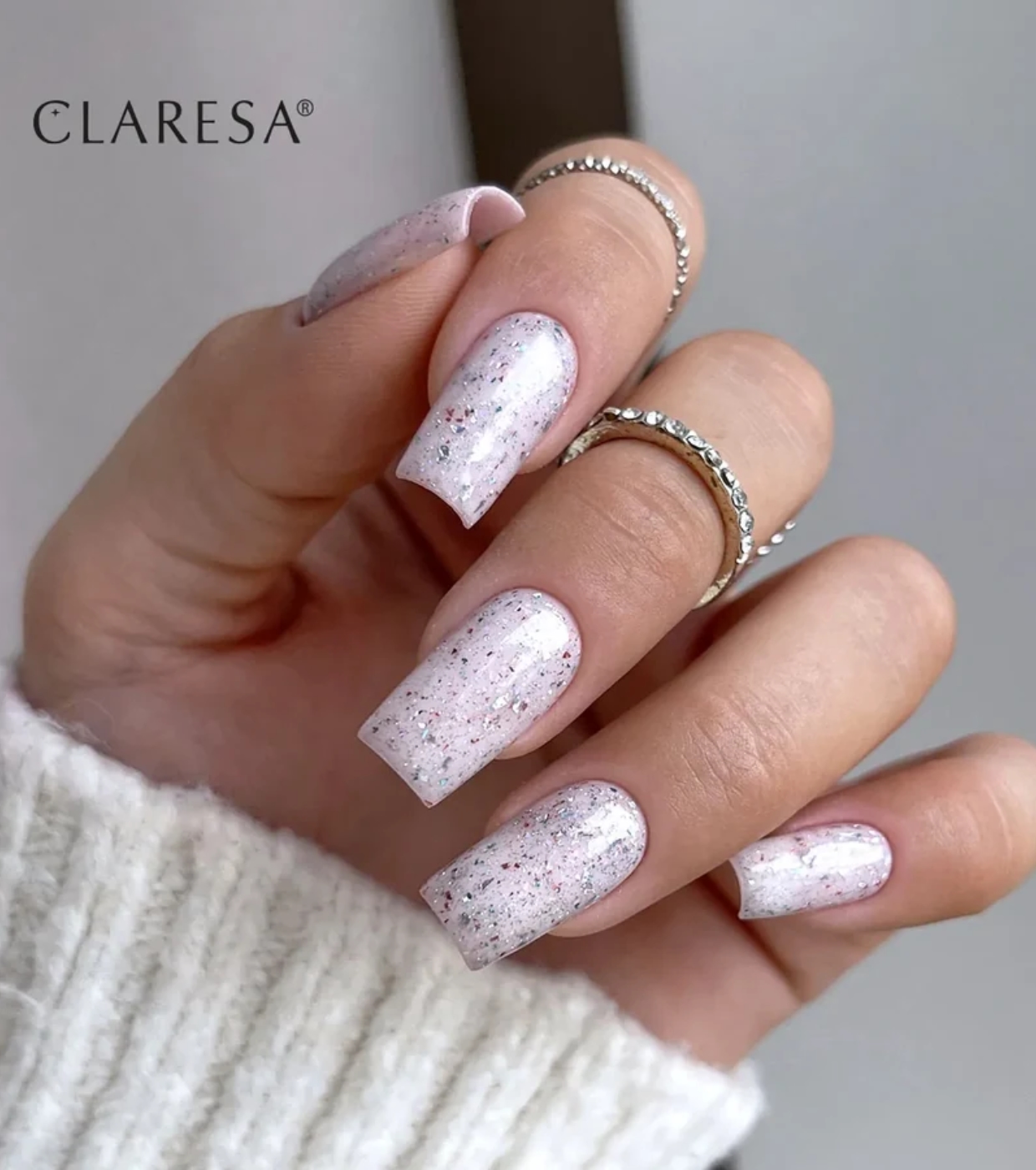 Verleihen Sie jeder Maniküre im Handumdrehen eine elegante Note mit diesem transparenten Überlack von Claresa mit silbernen Flocken.