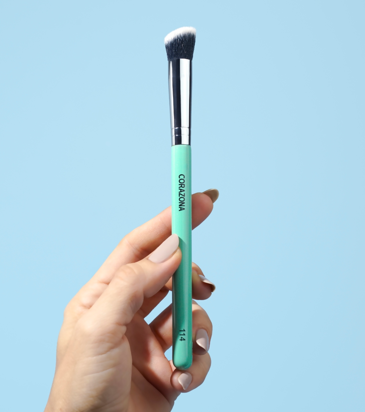 Sein gerader und abgeschrägter Schnitt, der zur Festigkeit und Dichte des Haars beiträgt, macht es ideal, um Ihren Concealer ganz einfach in die Augenringe einzuarbeiten.