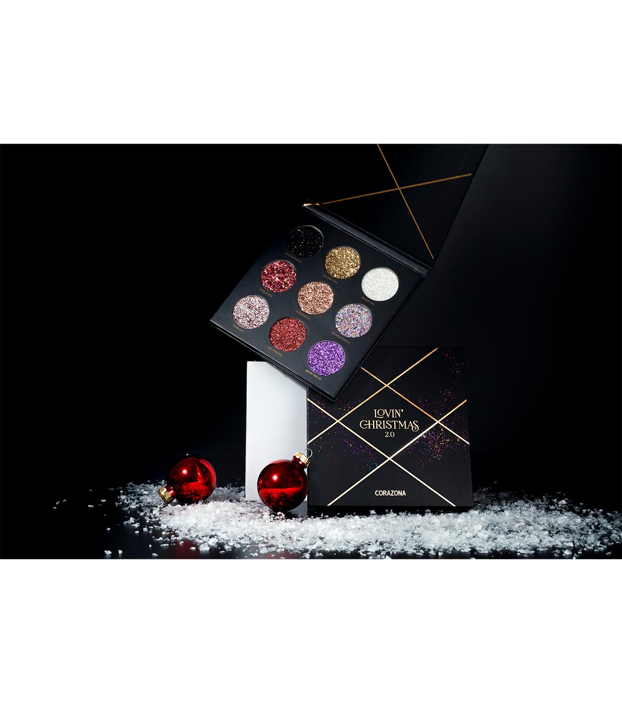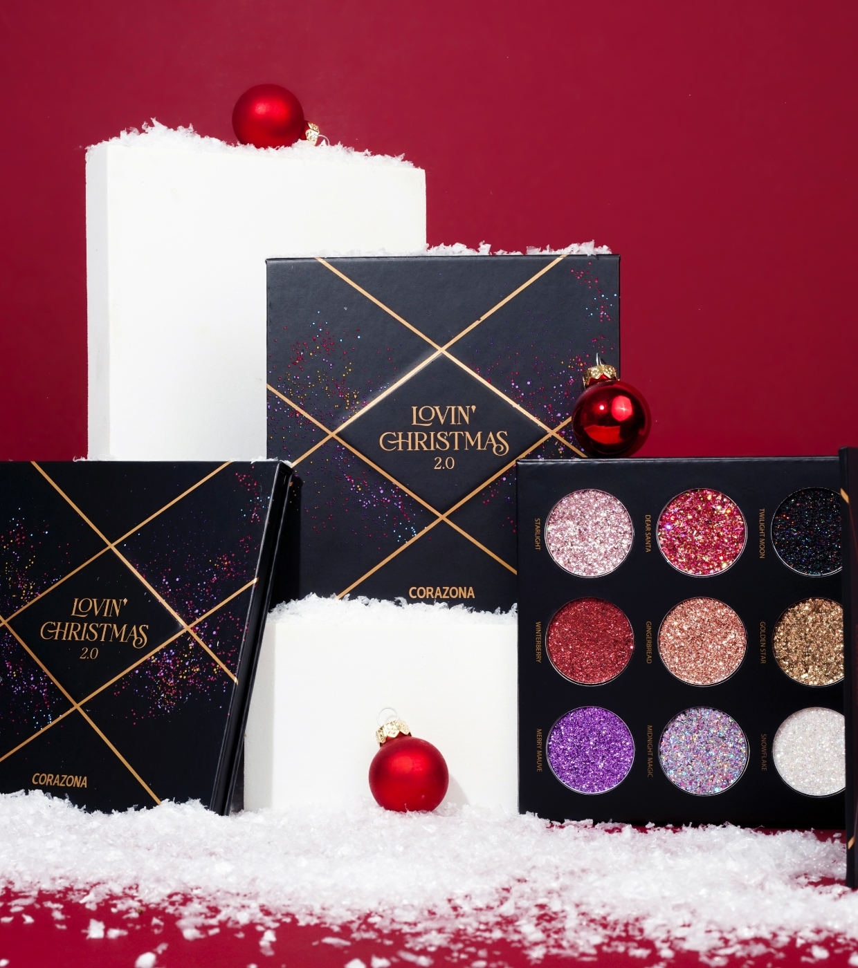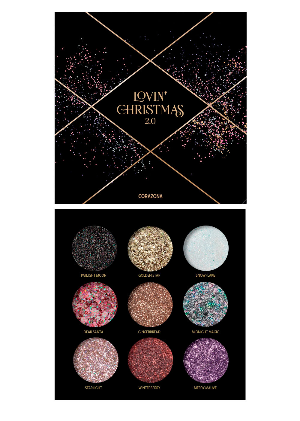 Corazonas Lovin' Christmas 2.0-Palette mit gepresstem Glitzer bringt Ihre festlichsten Looks auf ein neues Level, denn dieses Jahr sind wir noch einen Schritt weiter gegangen.