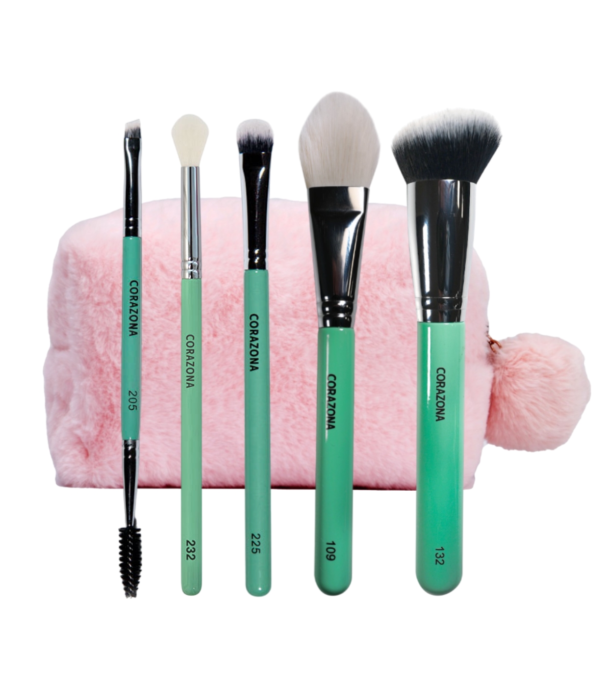 Das limitierte Set mit 5 Bürsten + Kulturbeutel Fluffy von Corazona ist der perfekte Verbündete, um jeden Look mit Präzision und Stil zu kreieren.
