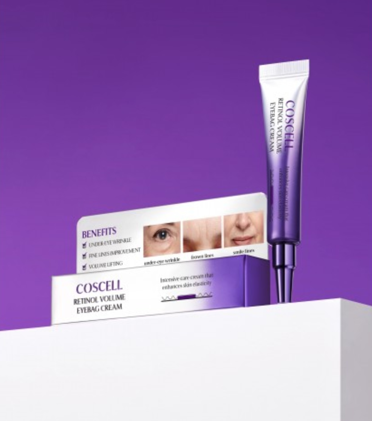 Die Retinol Volume Eye Bag Cream von COSCELL ist eine gezielte Augenkonturpflege, die entwickelt wurde, um feine Linien zu glätten, die Festigkeit zu verbessern und das Erscheinungsbild von Tränensäcken optisch zu reduzieren.