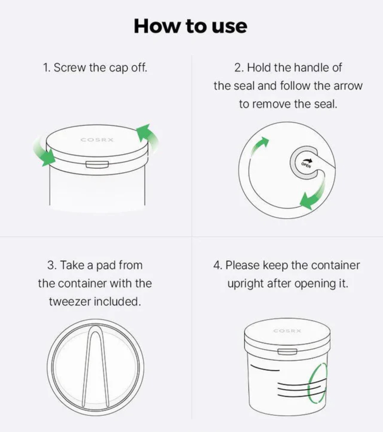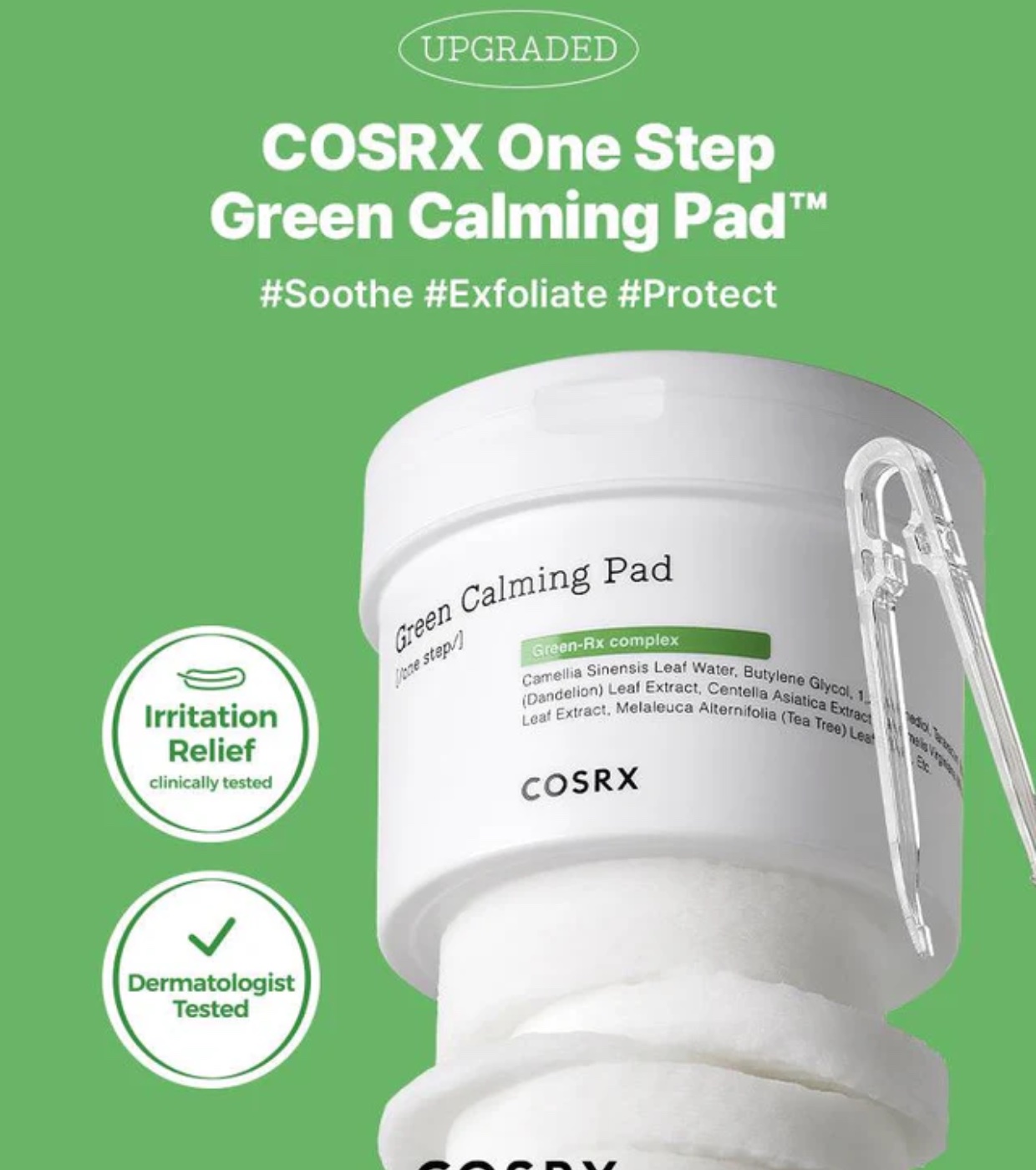 Beruhigendes Gesichtswasser Green im pads-Format von COSRX Der Held, der Ihre Haut pflegt, sie weich macht und ihre Empfindlichkeit beruhigt!