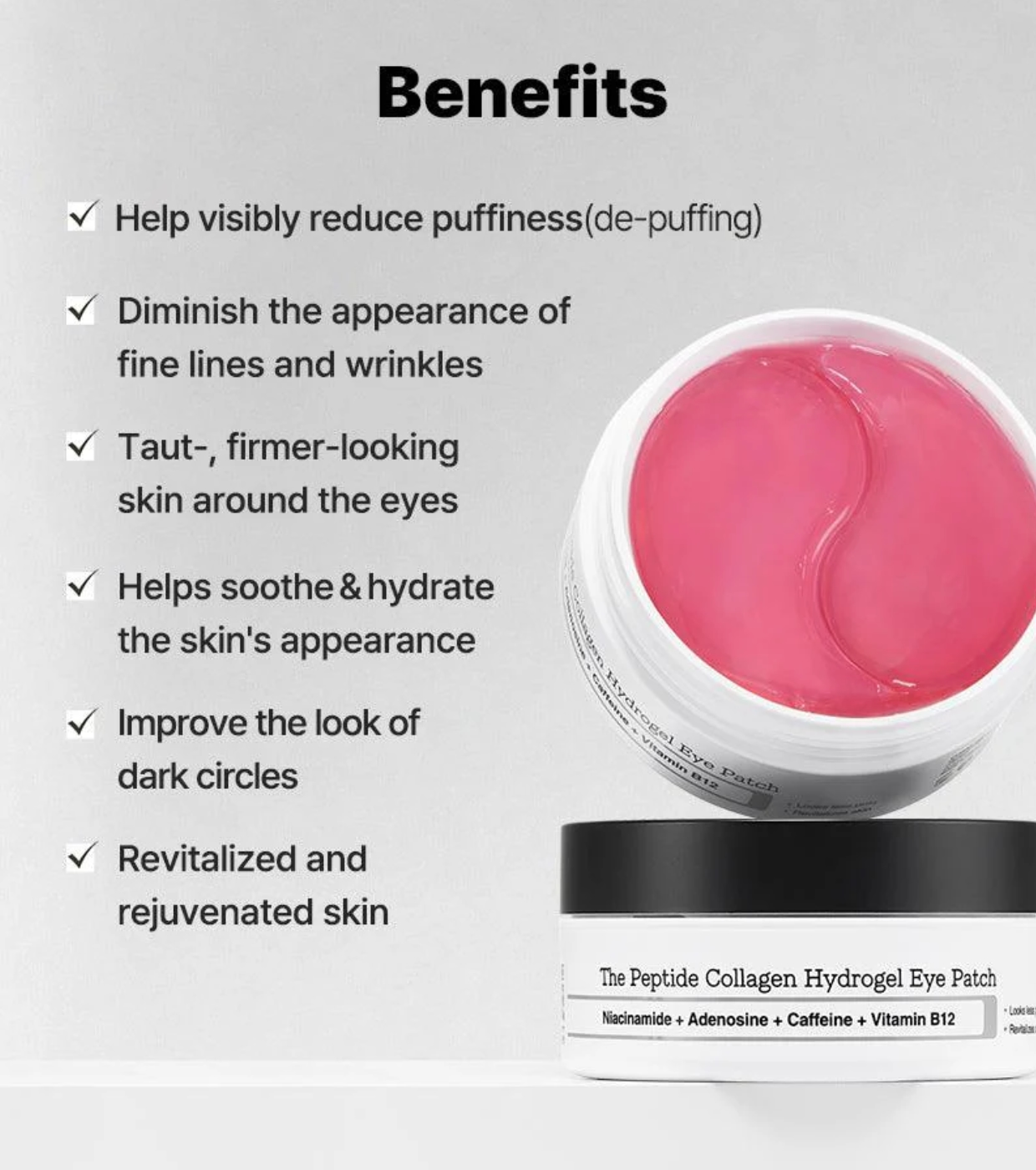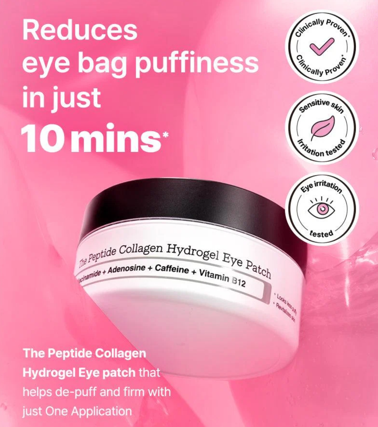 Diese innovativen Pflaster enthalten einen hochwirksamen Peptid- und Kollagenkomplex – zwei Schlüsselbestandteile zur Bekämpfung der Zeichen der Hautalterung, zur Reduzierung von Schwellungen und zur intensiven und langanhaltenden Feuchtigkeitsversorgung.