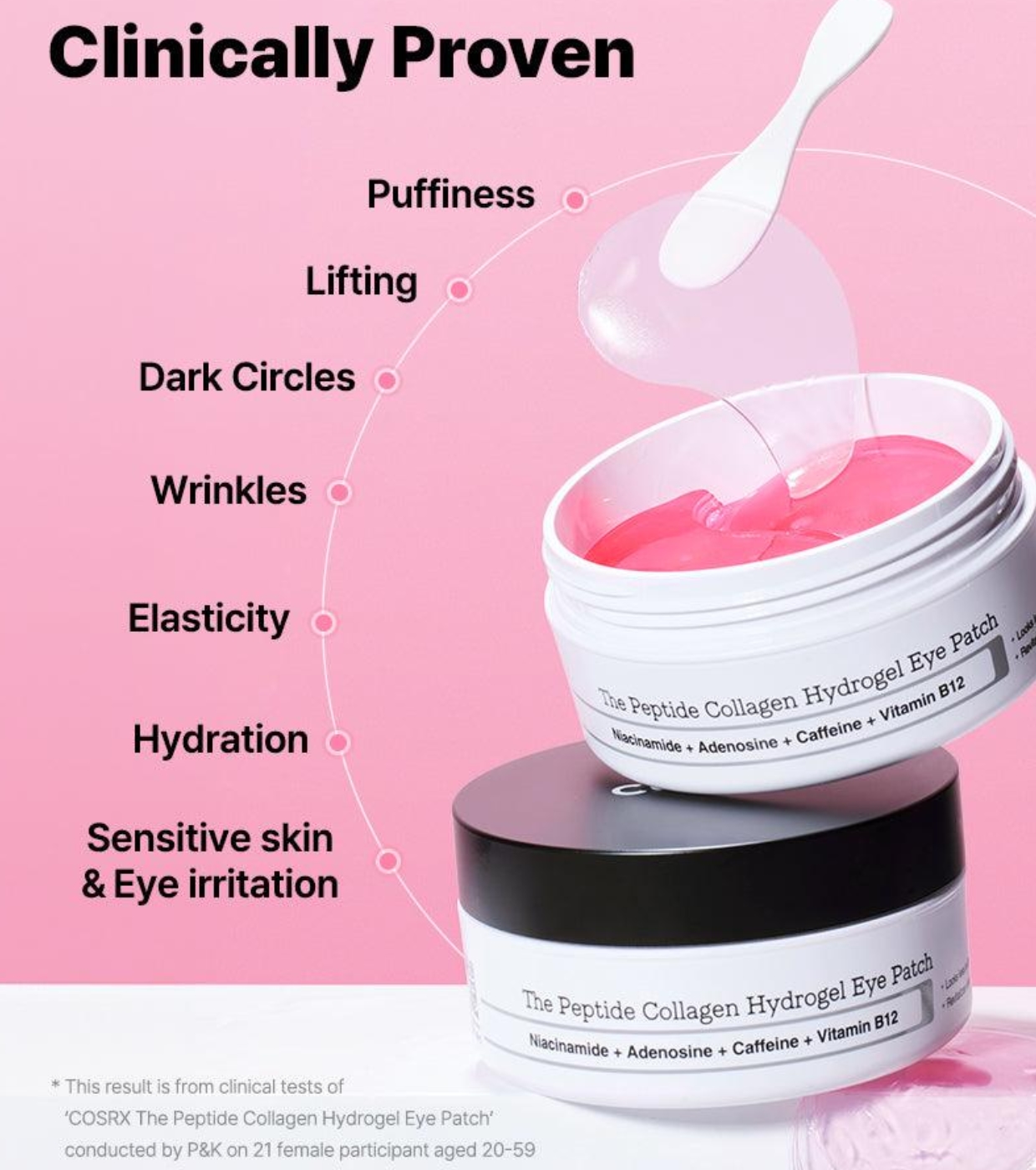 Die Hydrogel-Augenkontur-Patches The Peptide Collagen von COSRX sind die perfekte Lösung zur Pflege der empfindlichen Augenpartie.