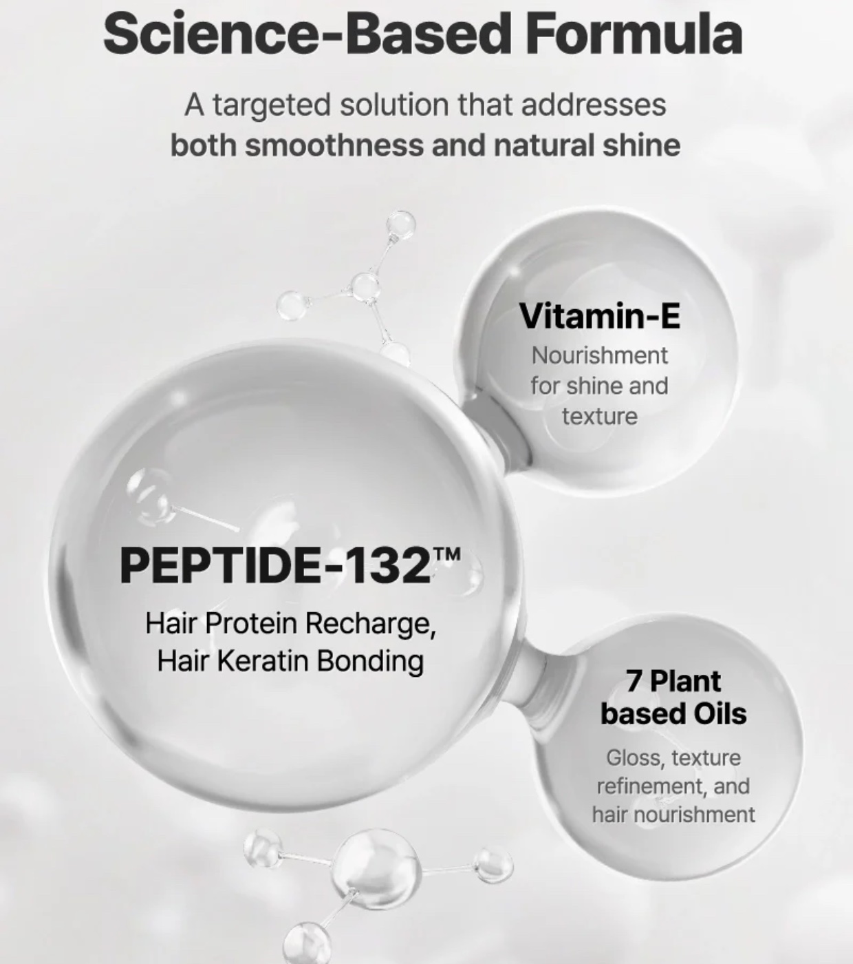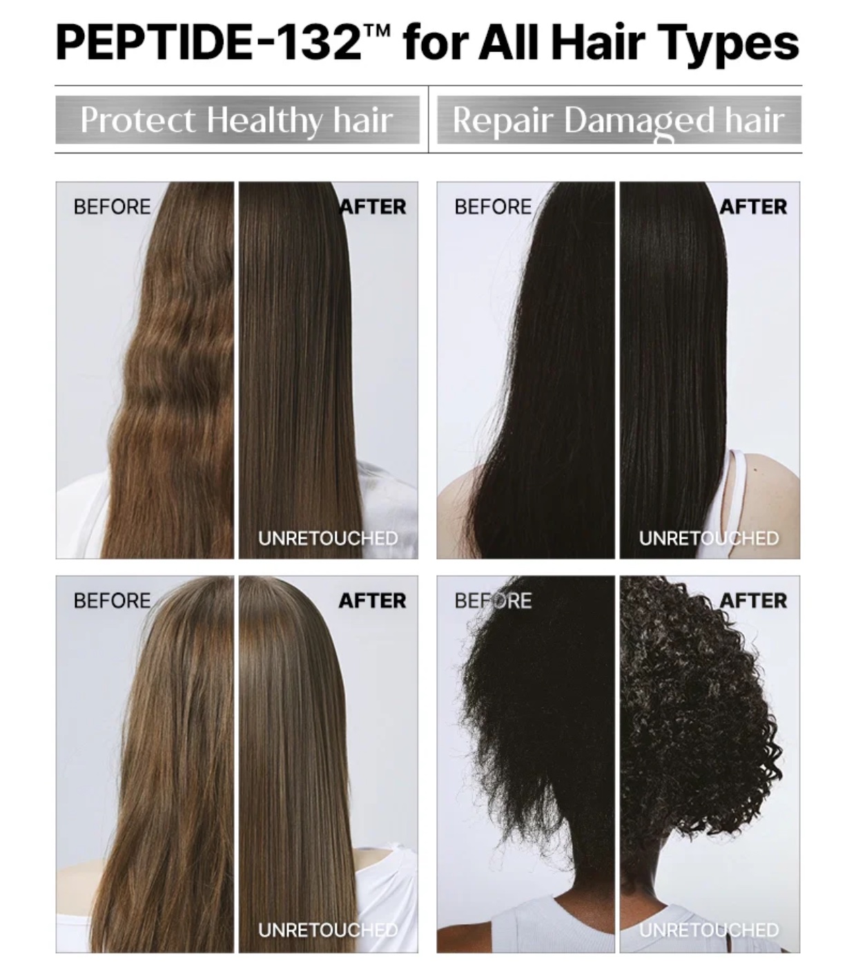 Angereichert mit dem patentierten Peptid PEPTIDE-132™ füllt es dünner werdende Stellen auf und schließt Feuchtigkeit und Nährstoffe ein. Ideal für dickes, stumpfes Haar, das einen weichen, gesund aussehenden Glanz vom Ansatz bis in die Spitzen benötigt.